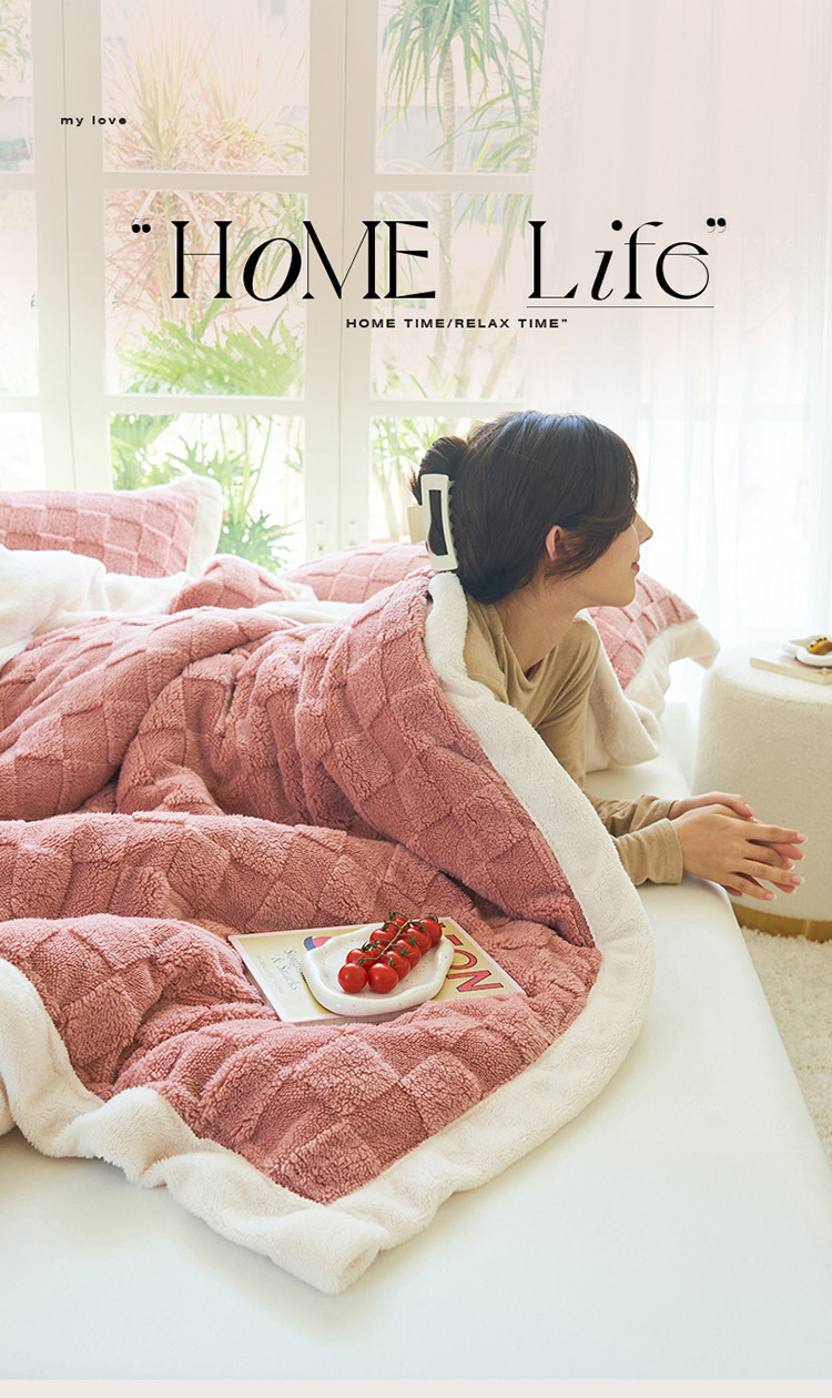 晨曦家纺 2022新款塔芙绒北极绒双层被套毛毯牛奶绒毯子 小方格-薄粉色