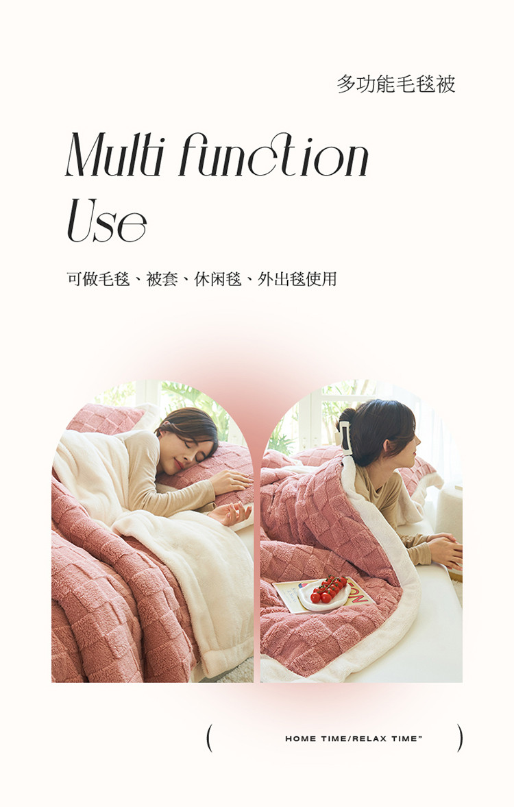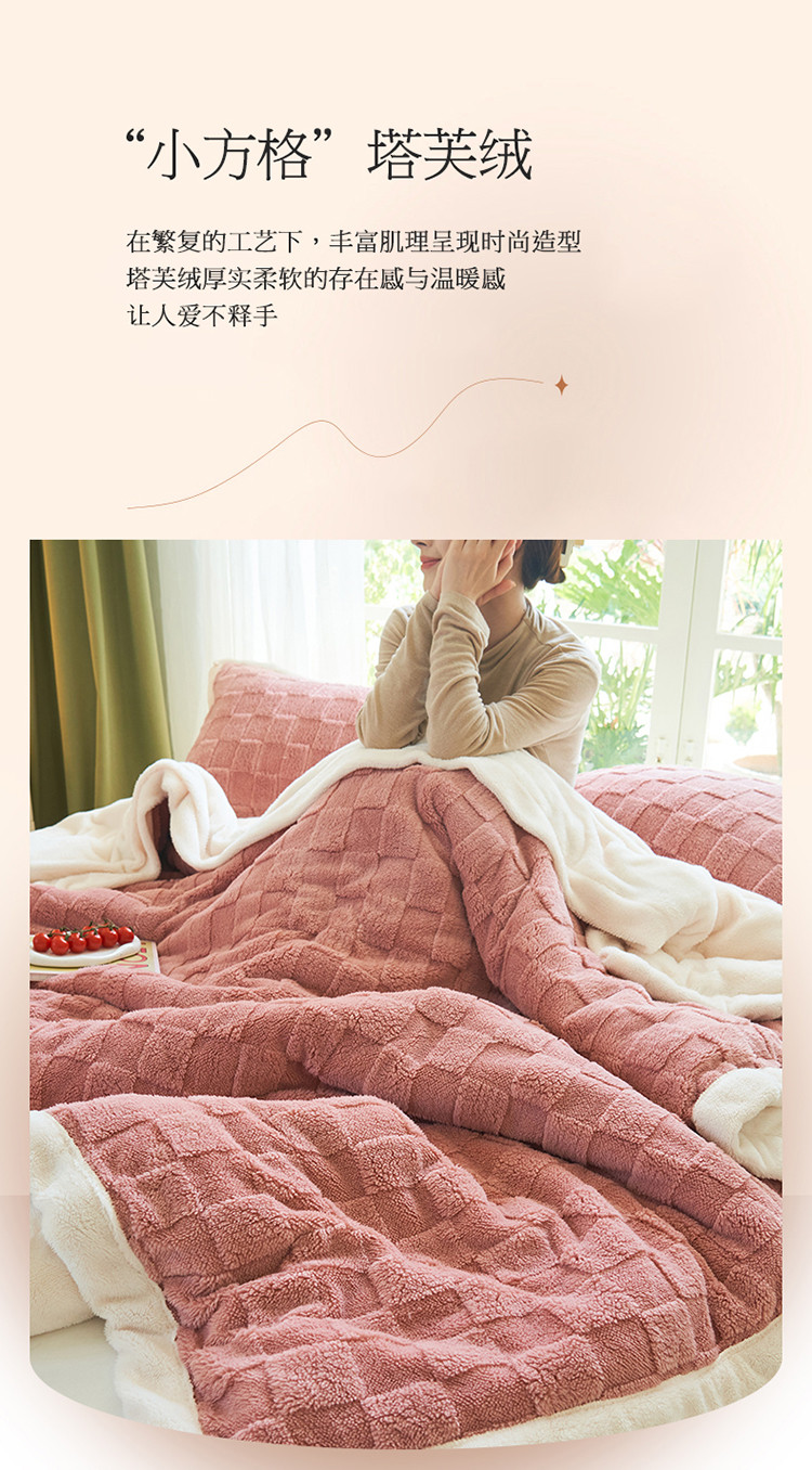 商品名称:晨曦家纺 2022新款塔芙绒北极绒双层被套毛毯牛奶绒毯子 小方格-薄粉色