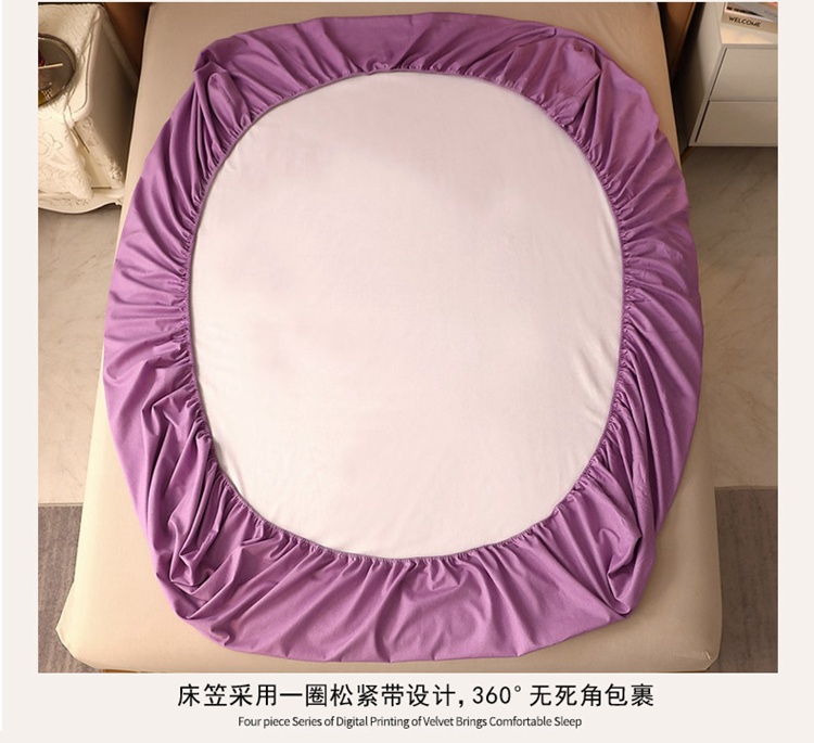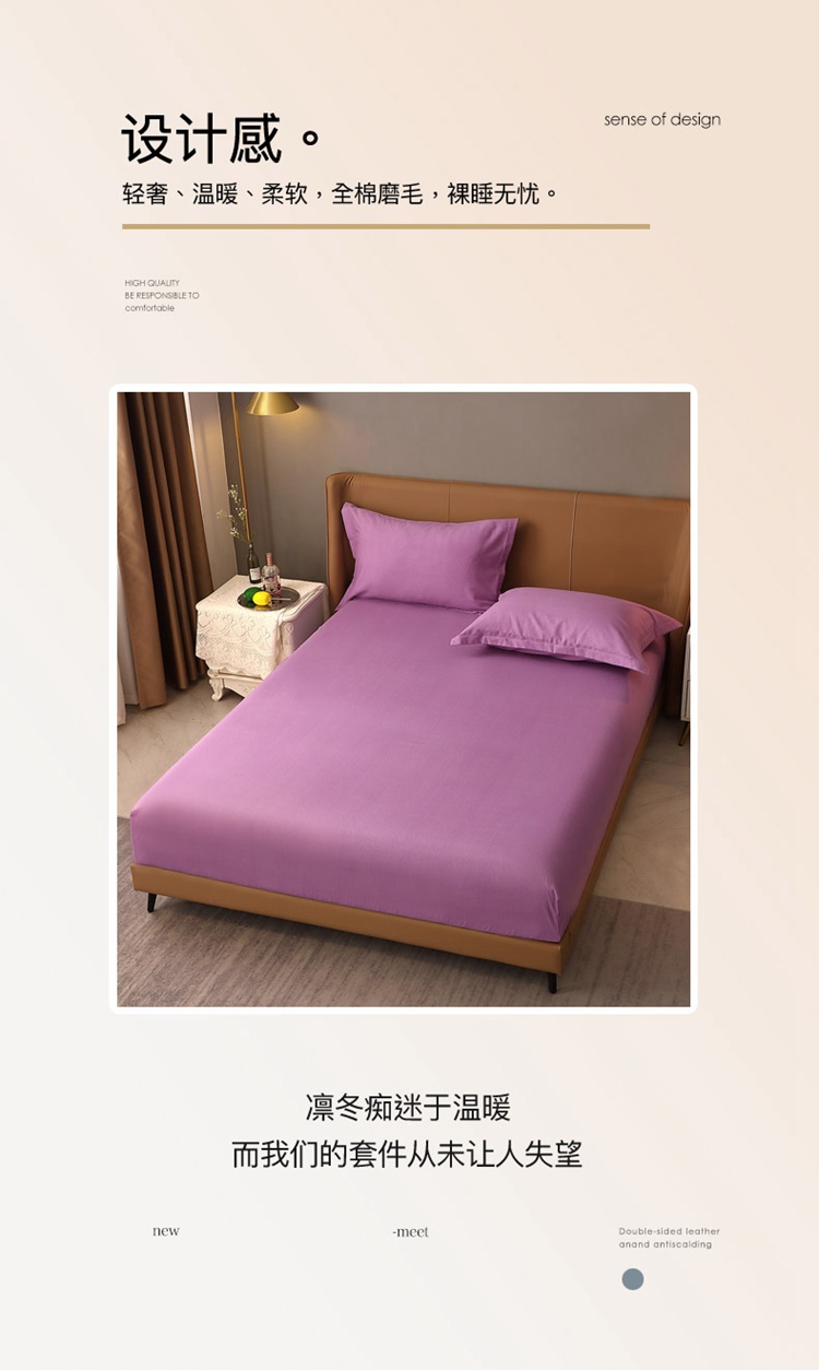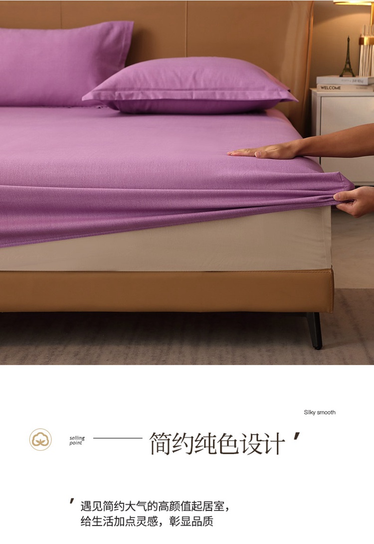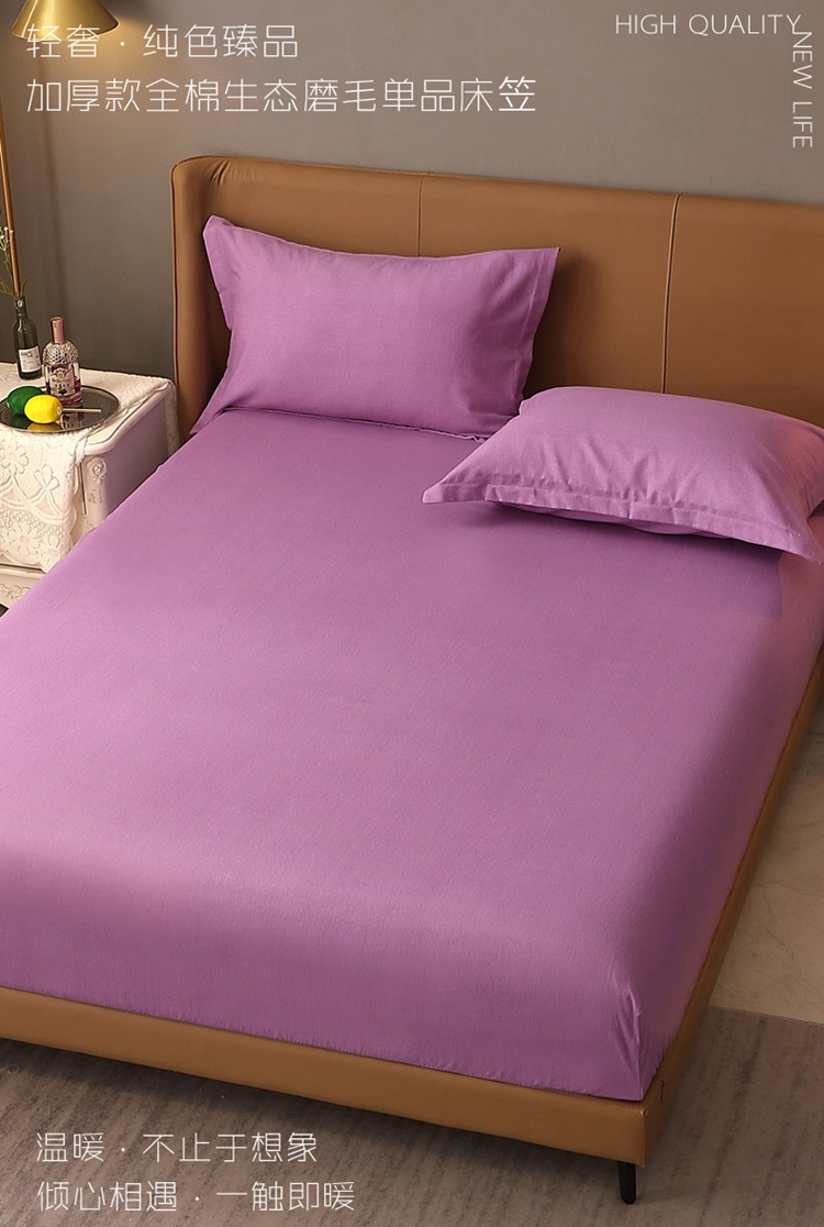 晶缦家纺 2022新款加厚全棉纯色生态磨毛多规格系列单床笠 纯依-魅紫