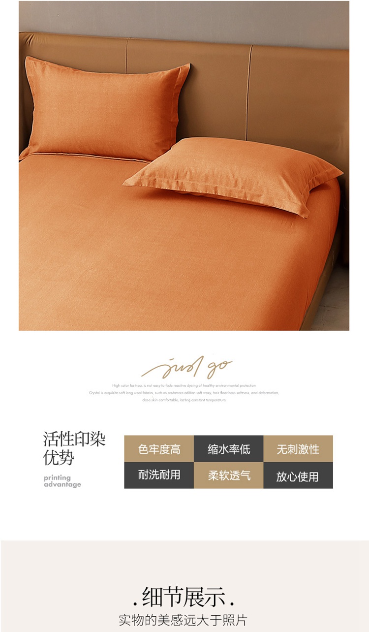 晶缦家纺 加厚全棉纯色生态磨毛多规格系列单品枕套纯依-时尚桔