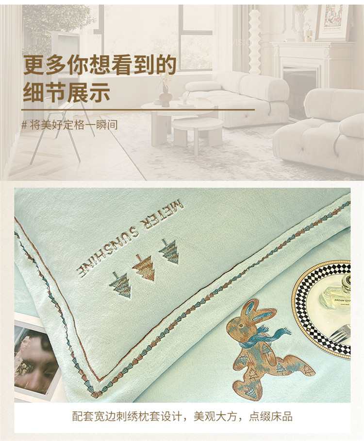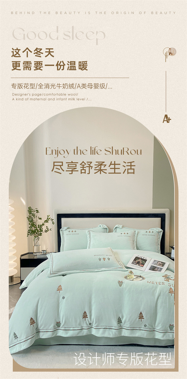 (总)家居1号家纺 2025新款230克A类牛奶绒双拼刺绣四件套-兰黛(控价券后不得低于238元 会员优惠10元),兰黛-浅绿,兰黛-少女粉,兰黛-温馨蓝,兰黛-紫豆沙