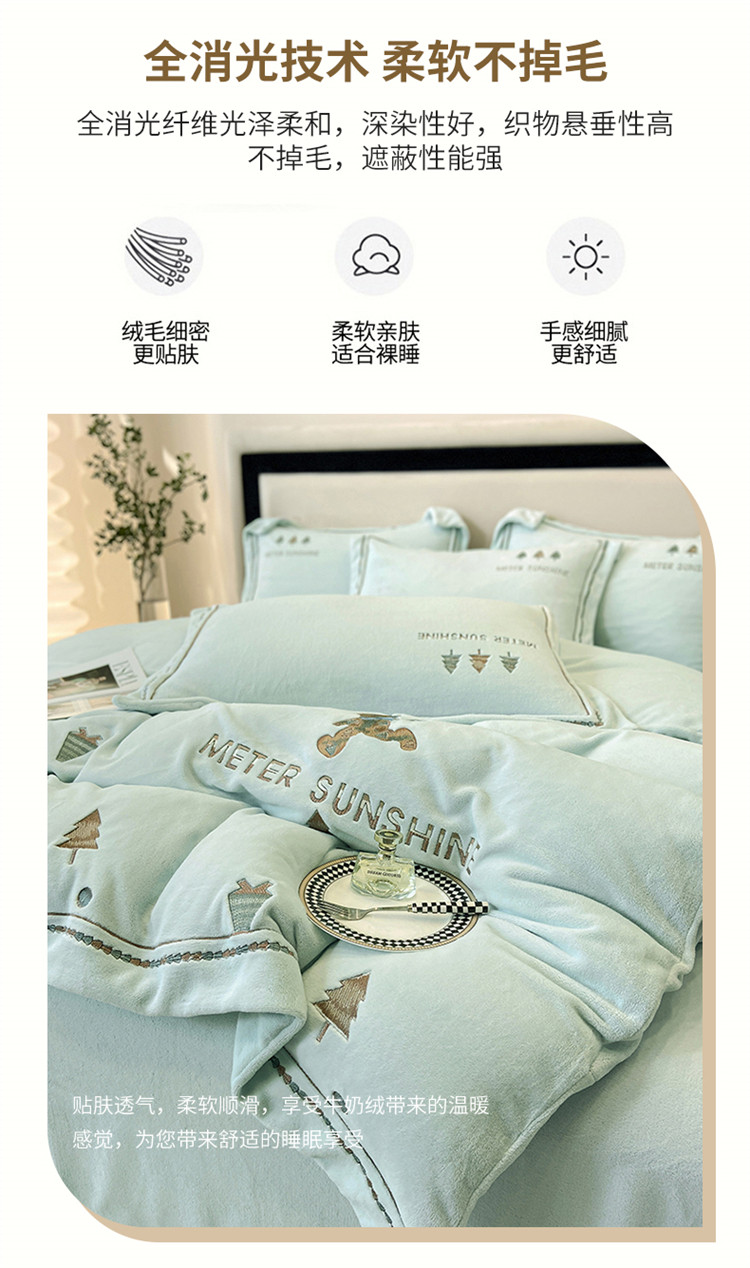 冬季新品230克加厚牛奶绒婴儿绒珊瑚绒四件套全消光床单被套