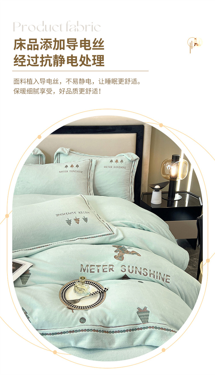 商品名称:冬季新品230克加厚牛奶绒婴儿绒珊瑚绒四件套全消光床单被套
