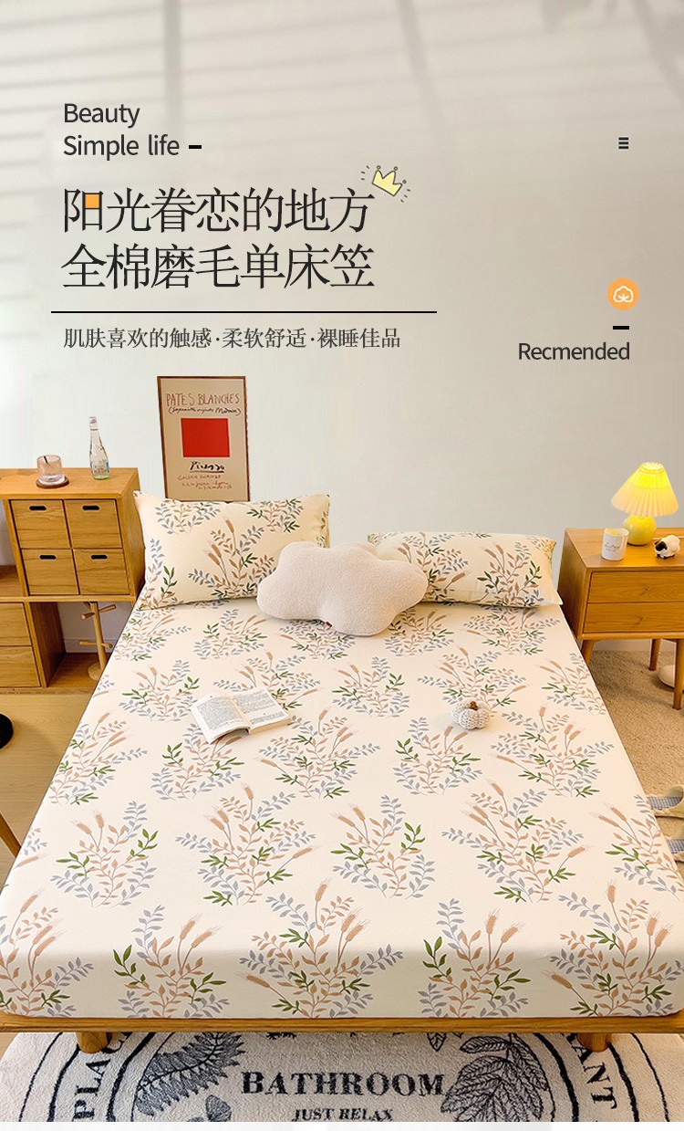 • 91家纺网 家纺一手货源 找家纺 芃成 2022新款全棉磨毛单床笠 如梦花季