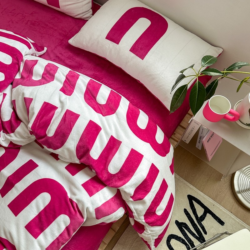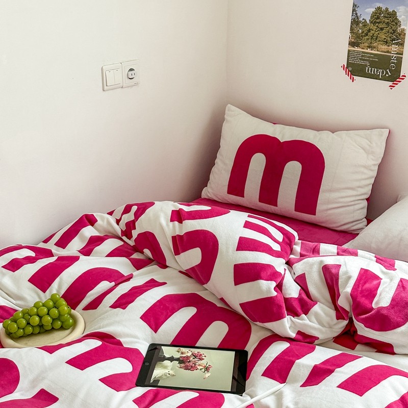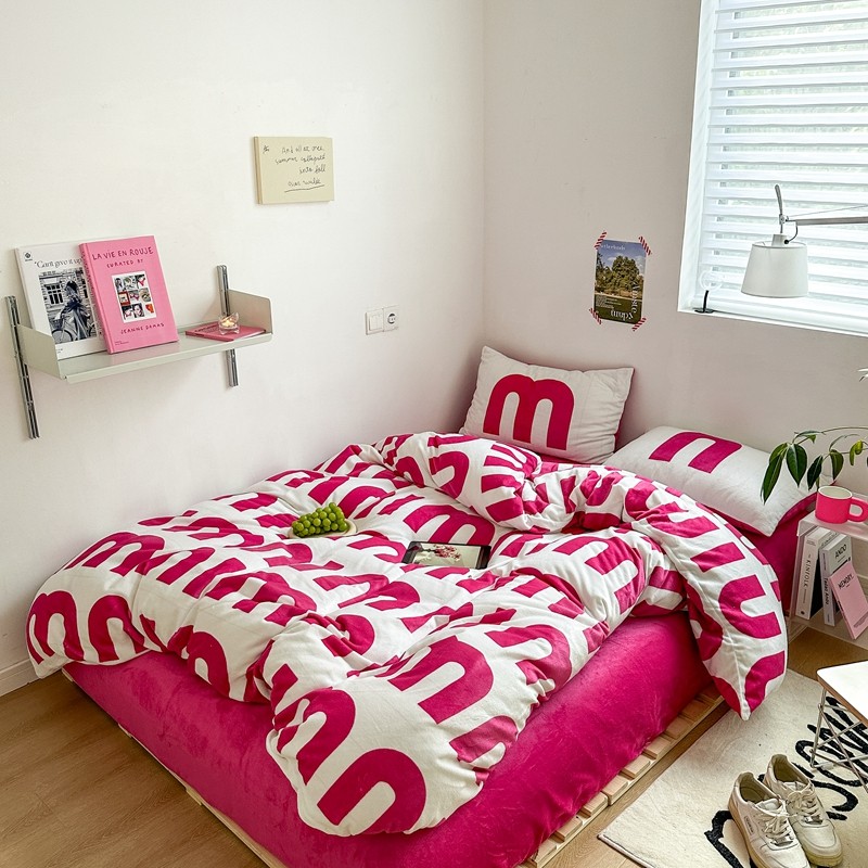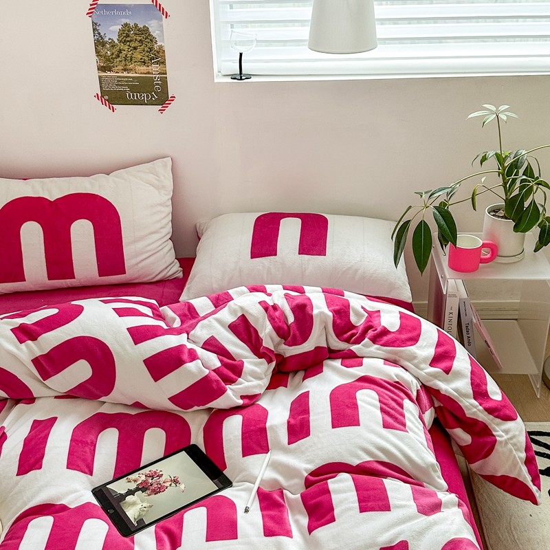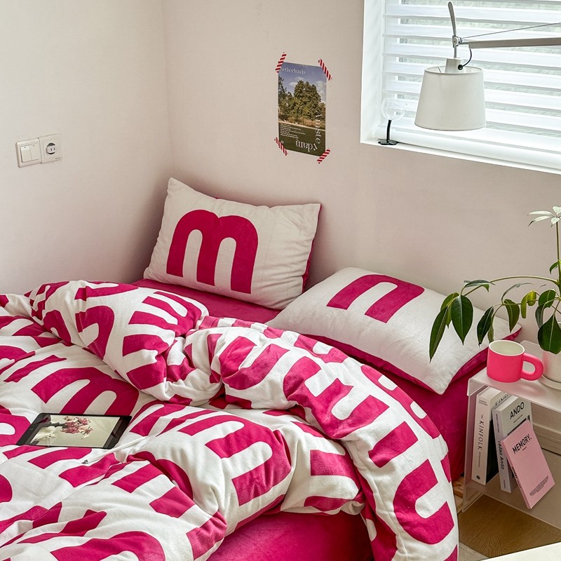 商品名称:柚子 2022新款现代空间牛奶绒四件套 粉白数字
