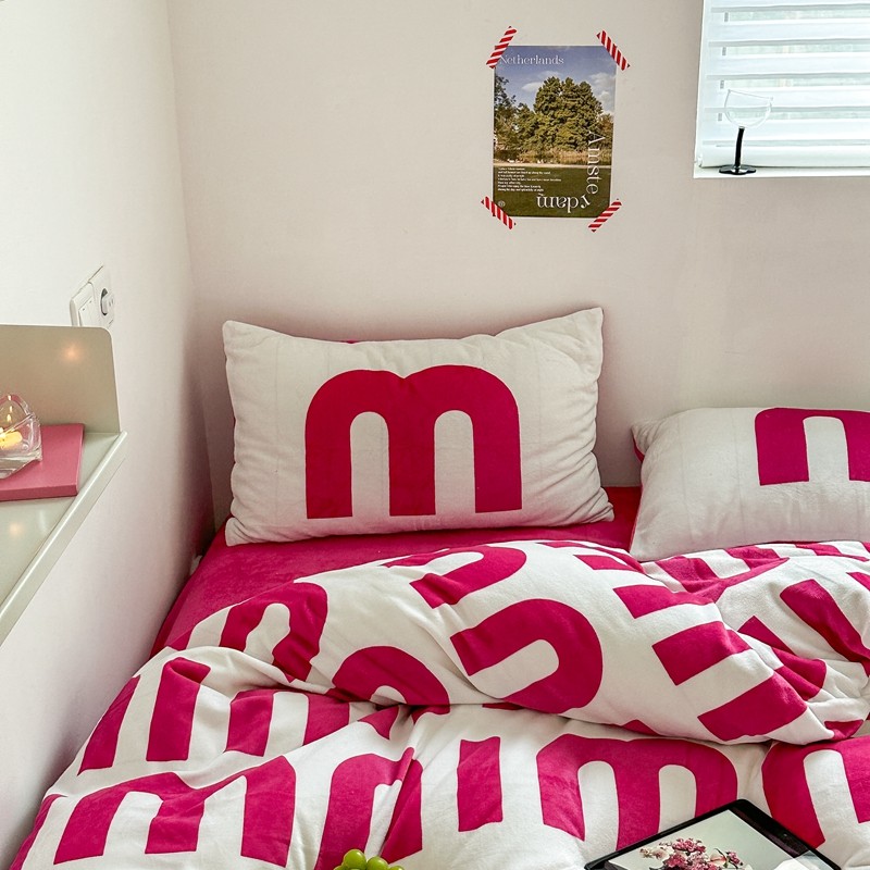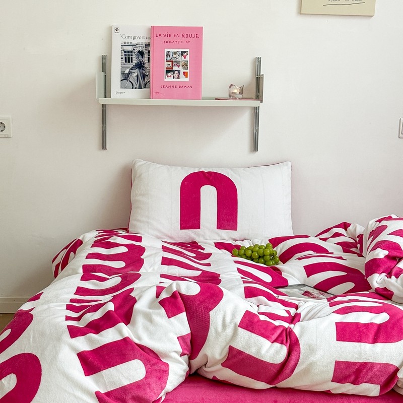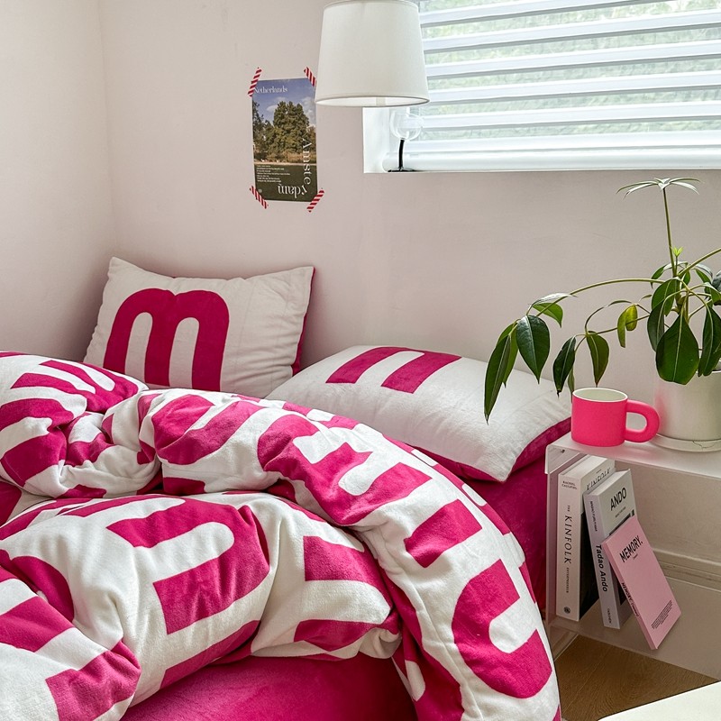 柚子 2022新款现代空间牛奶绒四件套 粉白数字