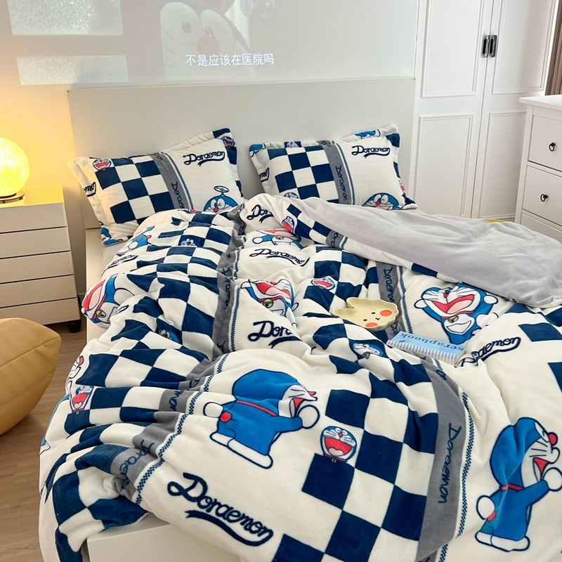 柚子 2022新款正版哆啦A梦牛奶绒四件套 哆啦A梦