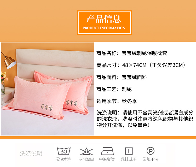 商品名称:(总)丰淘 2022新款宝宝绒刺绣保暖枕套一对装