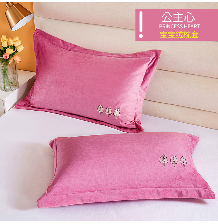 (总)丰淘 2022新款宝宝绒刺绣保暖枕套一对装