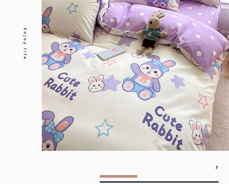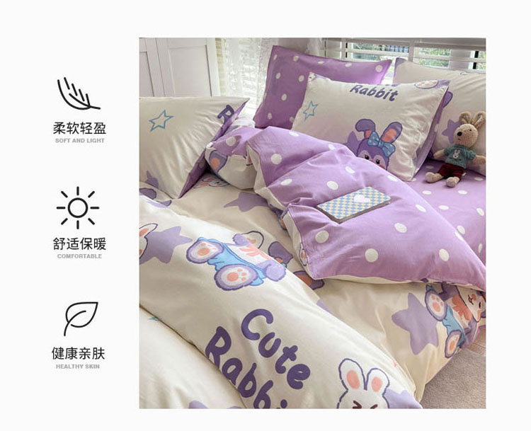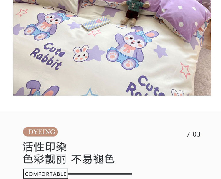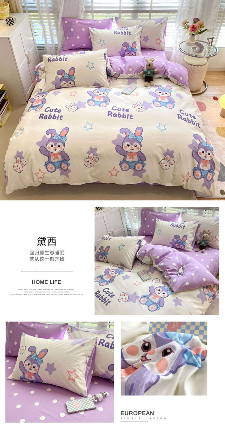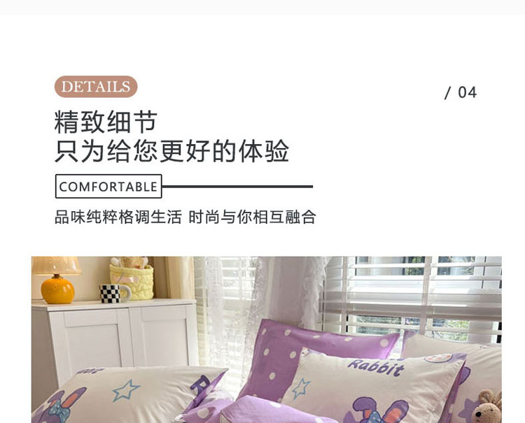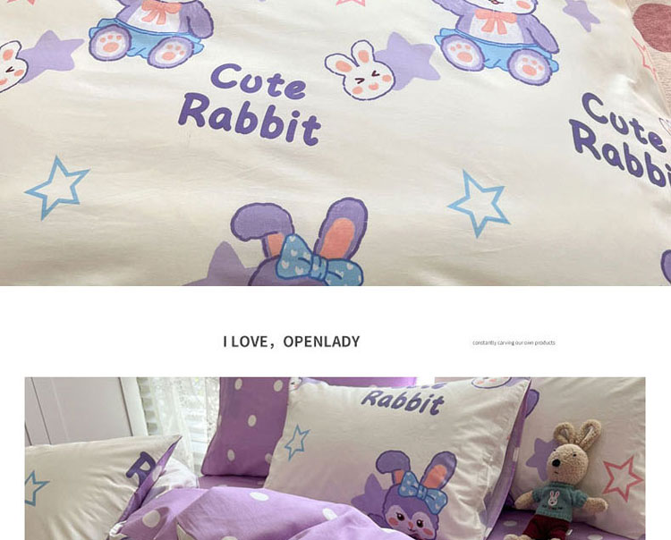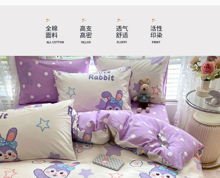 (总)梦家居 2023春季新品小清新系列全棉四件套,幸运兔,爱心兔,铃兰花兔,钱兔柿锦,熊兔乐园,奶咖小兔,西莉娅,魔法小兔,郁金粉兔,郁金紫兔,草莓兔,蜜桃兔,黛西,南瓜小兔,郁金花兔