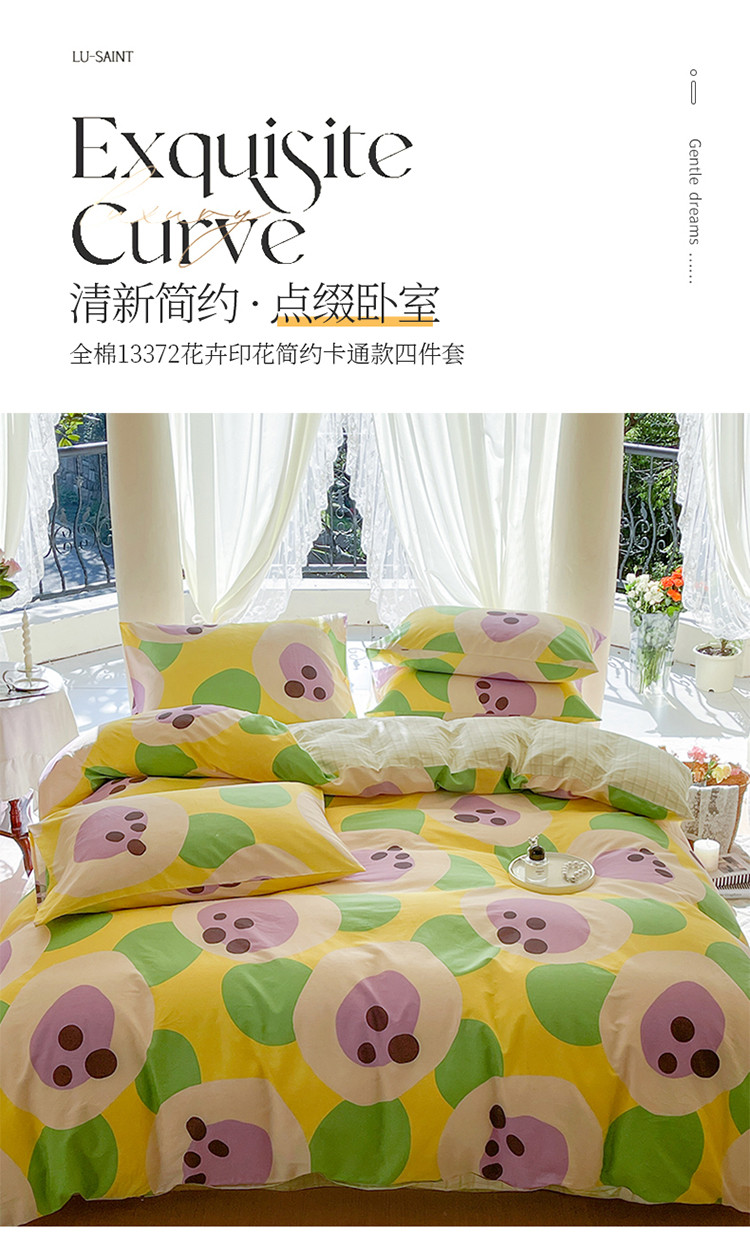 商品名称:星巴k家纺2023新款全棉13372花卉印花简约卡通款多规格四件套昙雅