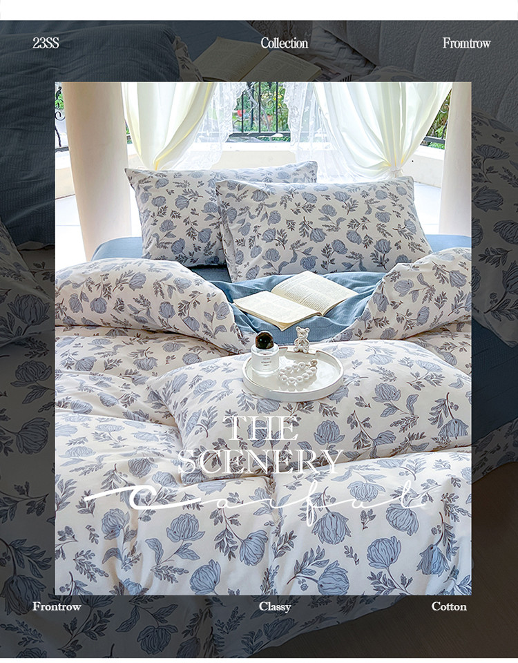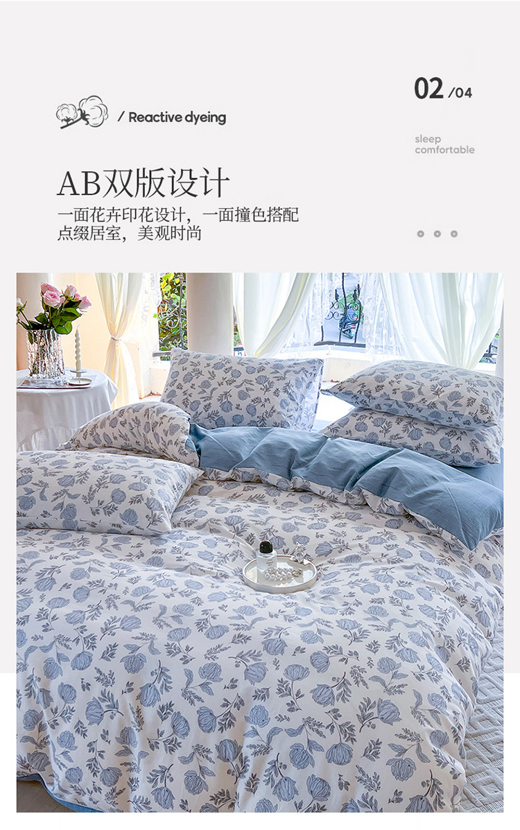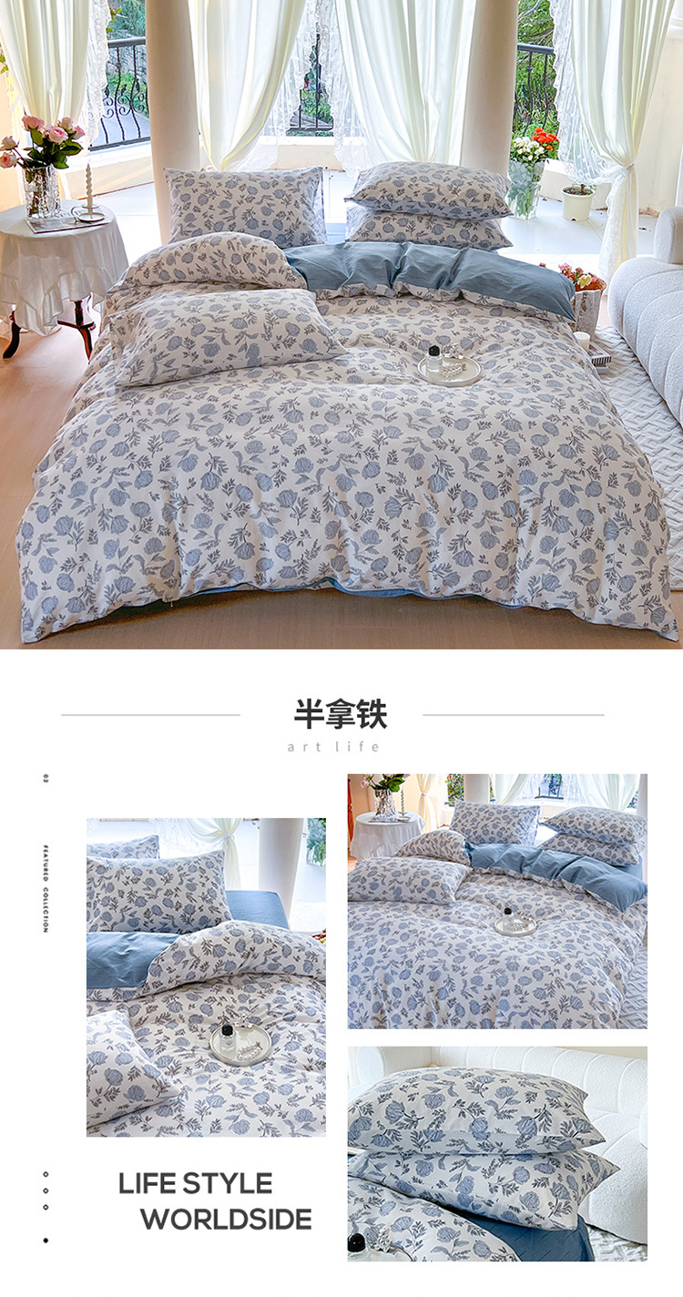 星巴k 2023新款全棉13372花卉印花简约卡通款多规格四件套半拿铁