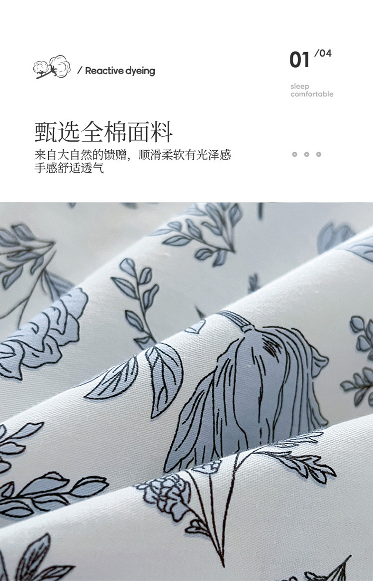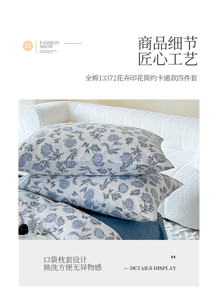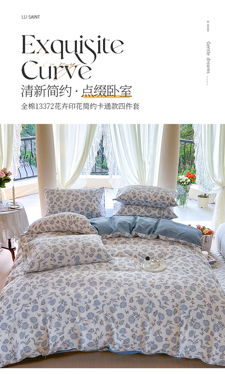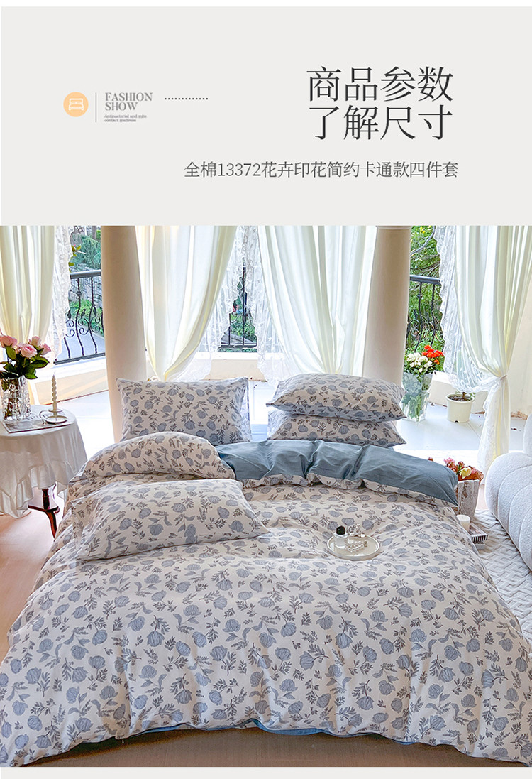 商品名称:星巴k 2023新款全棉13372花卉印花简约卡通款多规格四件套半拿铁