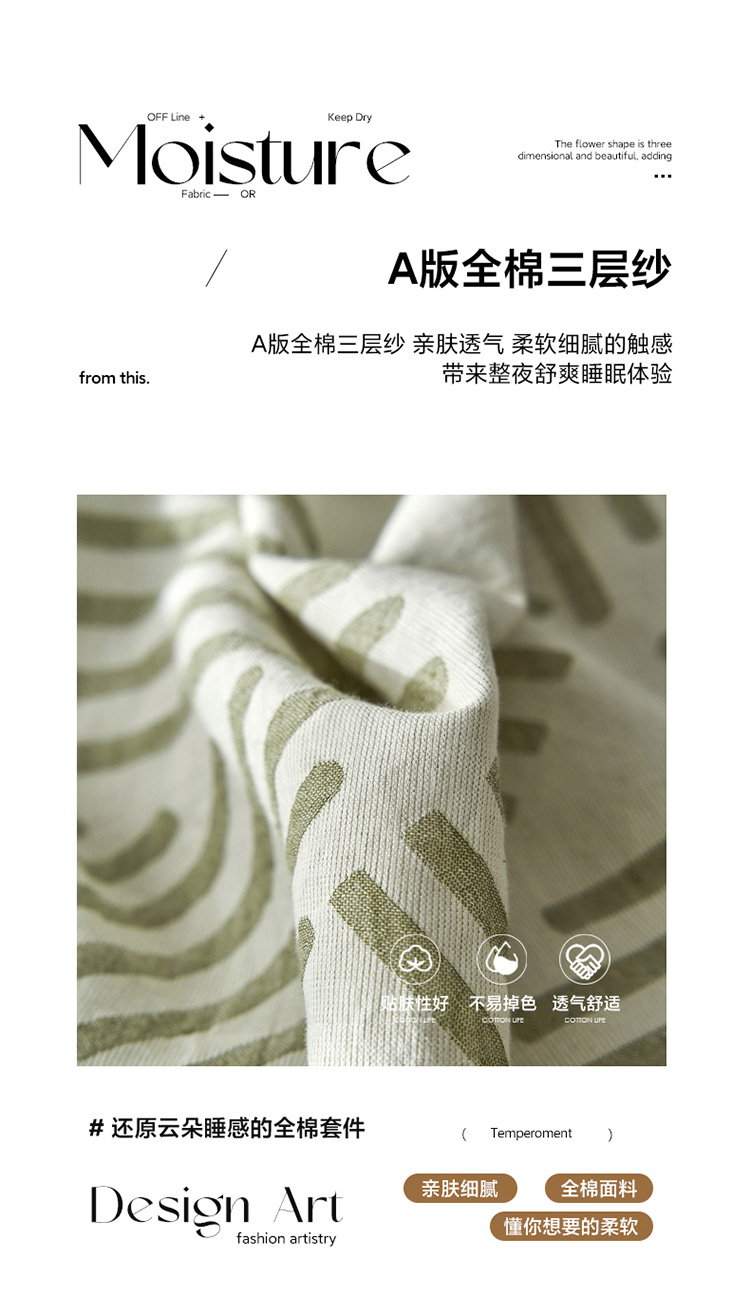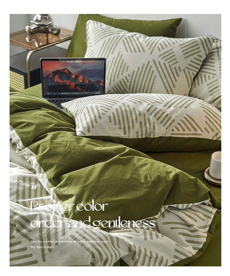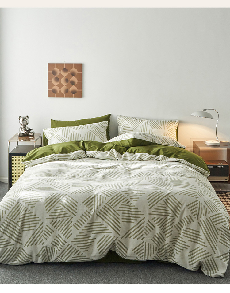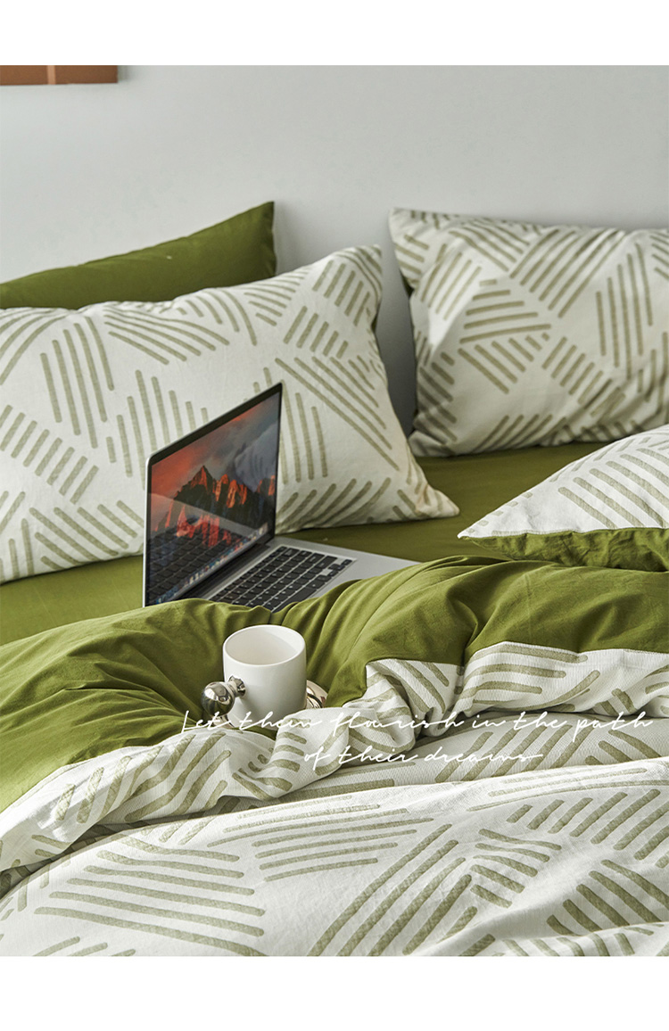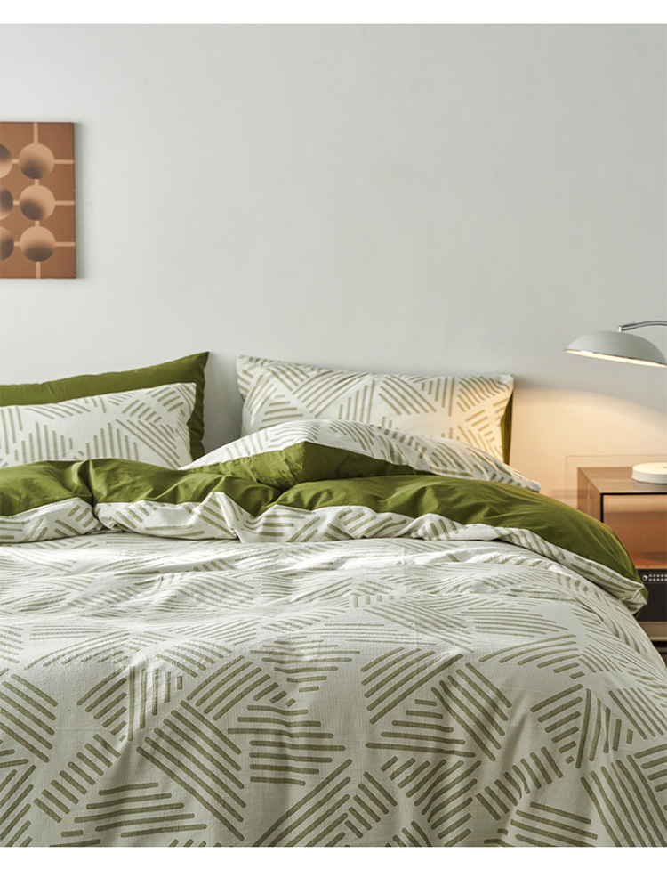 商品名称:雅居纺 2023新款全棉三层纱提花四件套 简格-绿