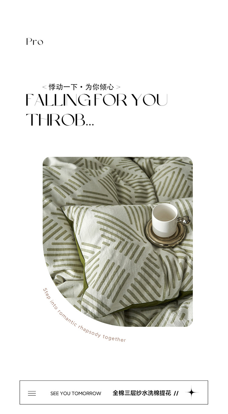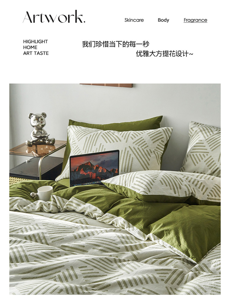 雅居纺 2023新款全棉三层纱提花四件套 简格-绿