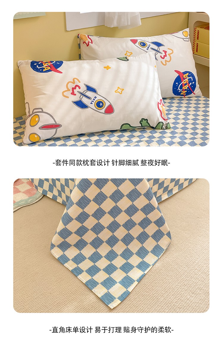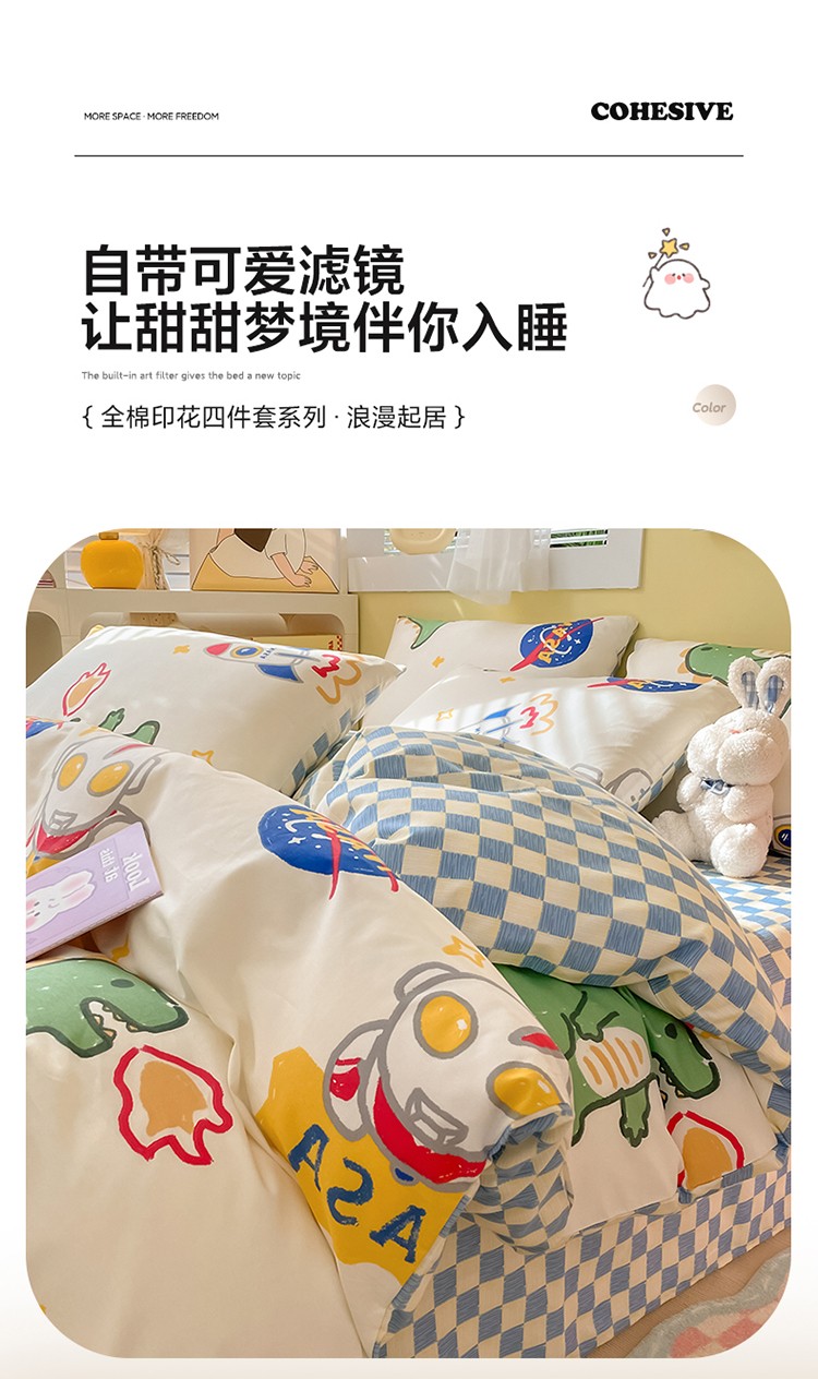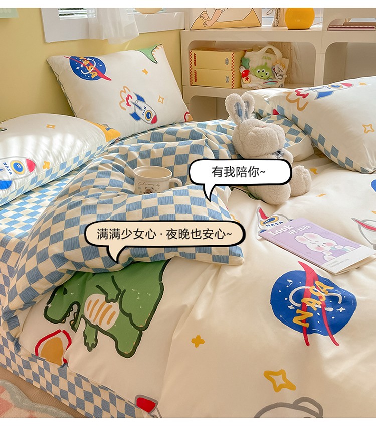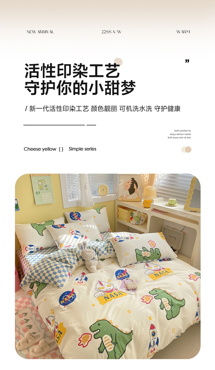 (总)雅居纺家纺 2022新款13070全棉印花四件套,草莓蝴蝶结,俄罗斯方块,黑白蝴蝶结,很嗨兔,可爱小兔,快乐花海,牛奶纹,胖胖鸭,棋盘格,日月争辉,西部恐龙,小情调,小桃桃