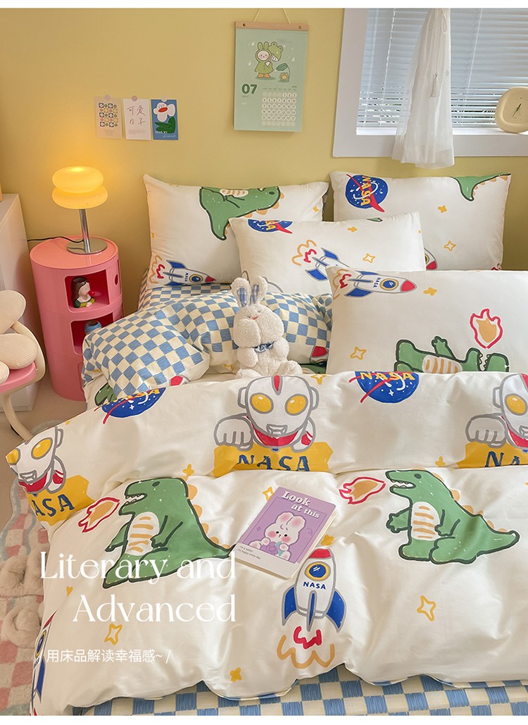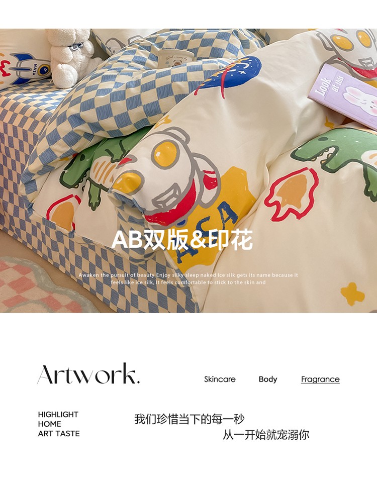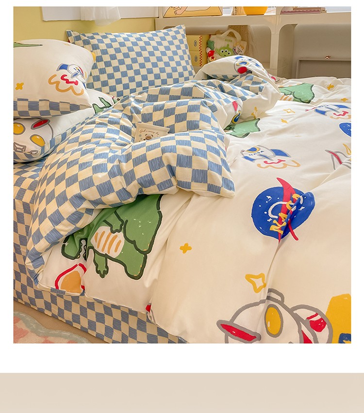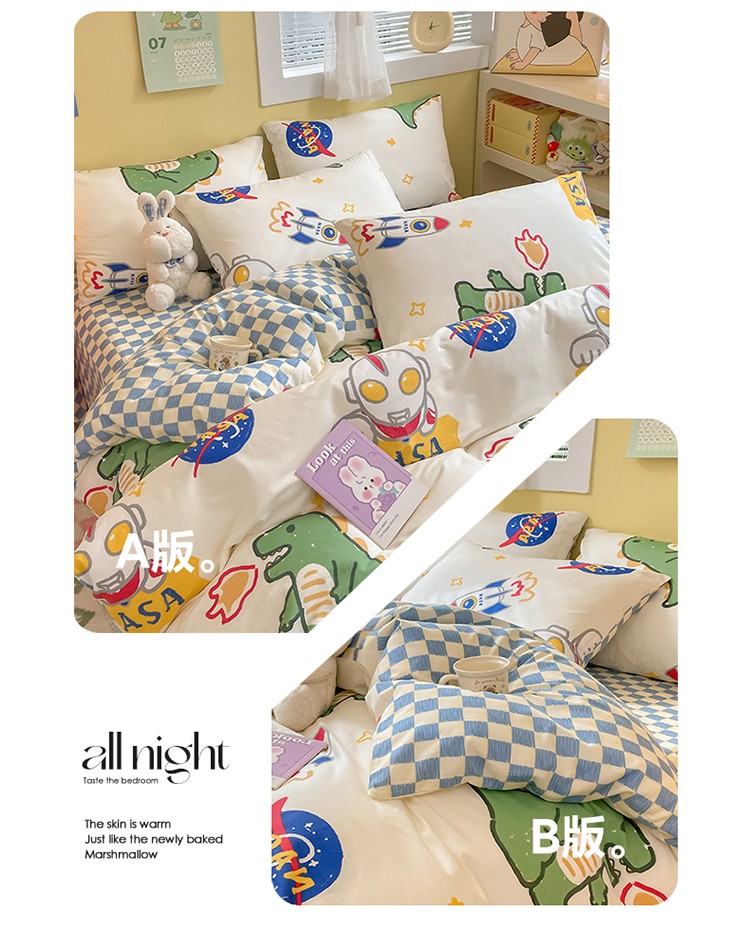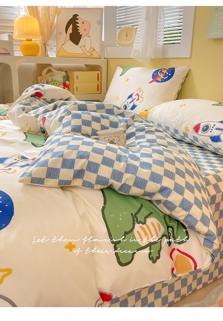 (总)雅居纺家纺 2022新款13070全棉印花四件套,草莓蝴蝶结,俄罗斯方块,黑白蝴蝶结,很嗨兔,可爱小兔,快乐花海,牛奶纹,胖胖鸭,棋盘格,日月争辉,西部恐龙,小情调,小桃桃