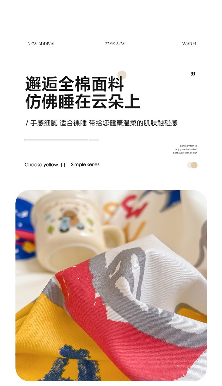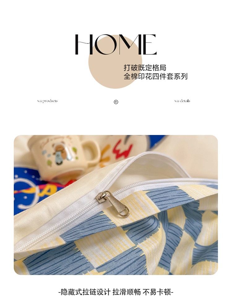 (总)雅居纺家纺 2022新款13070全棉印花四件套,波纹,多彩,简笔画,莓关系,奶油绿豹纹,倾心,数字
