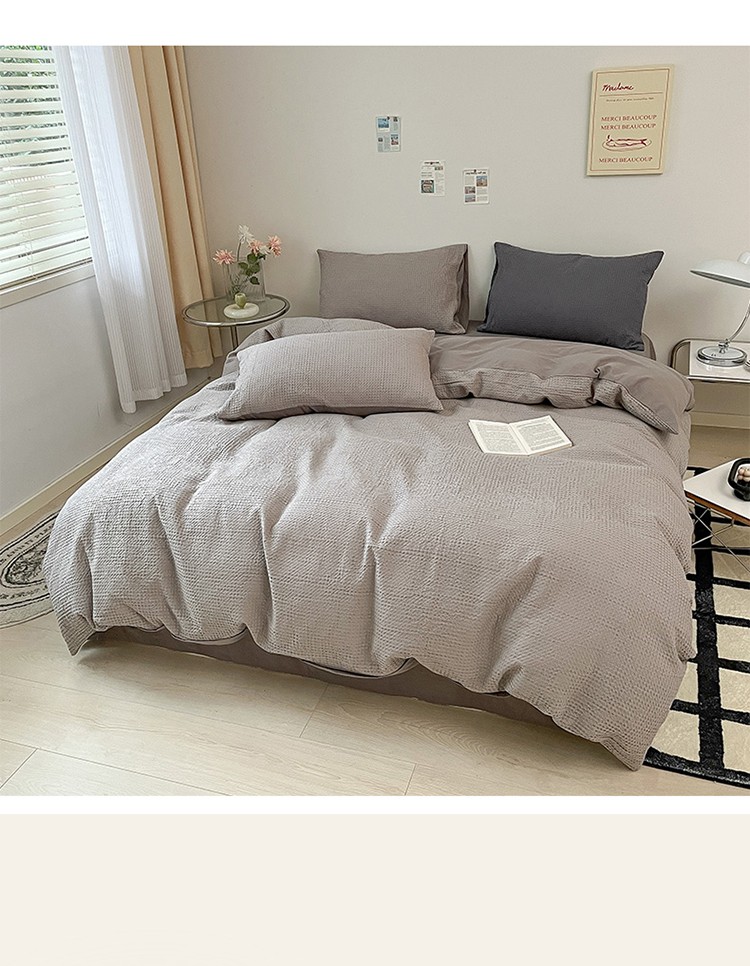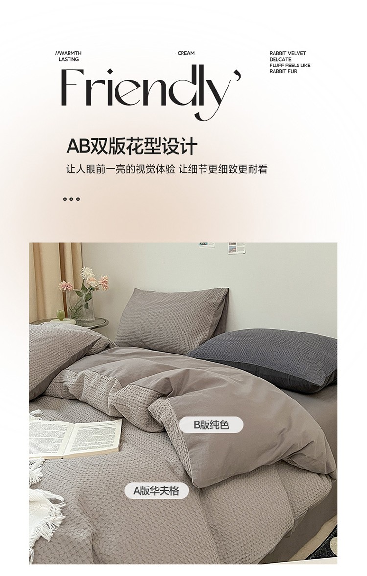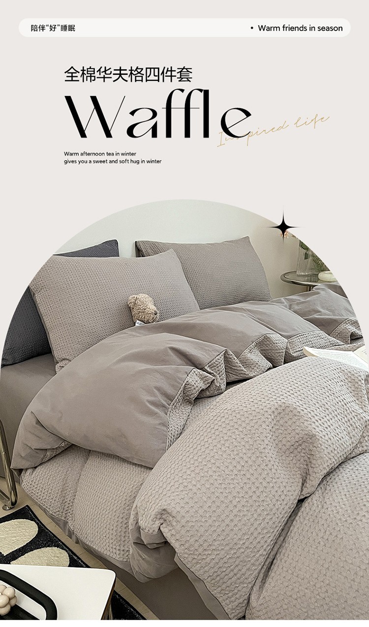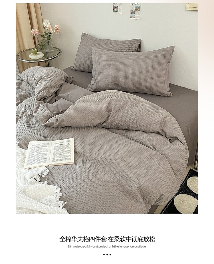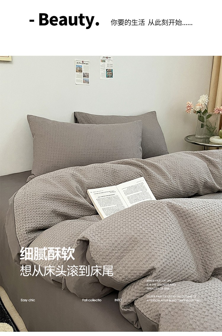 (总)雅居纺家纺 2022新款全棉华夫格普通款四件套,焦糖,米驼,奶油白,柔粉,深灰,雾蓝,月灰