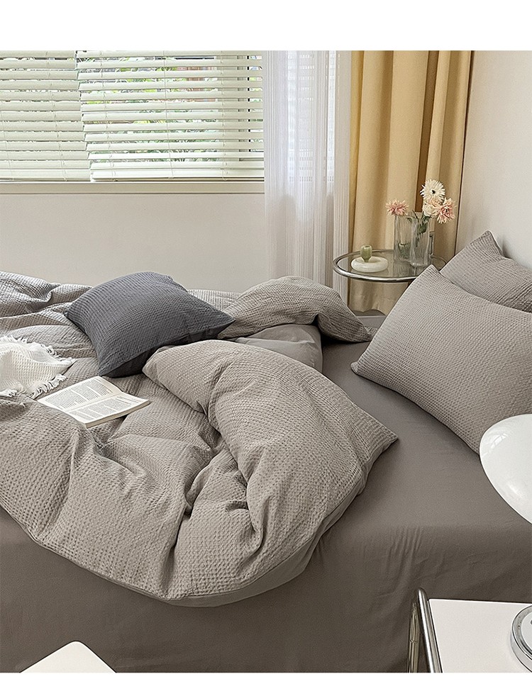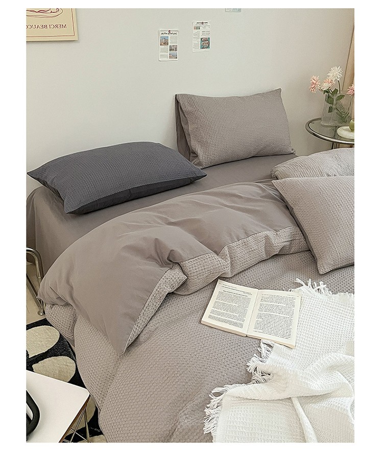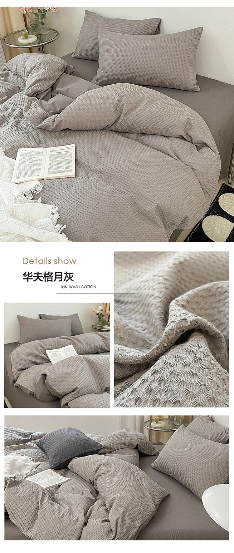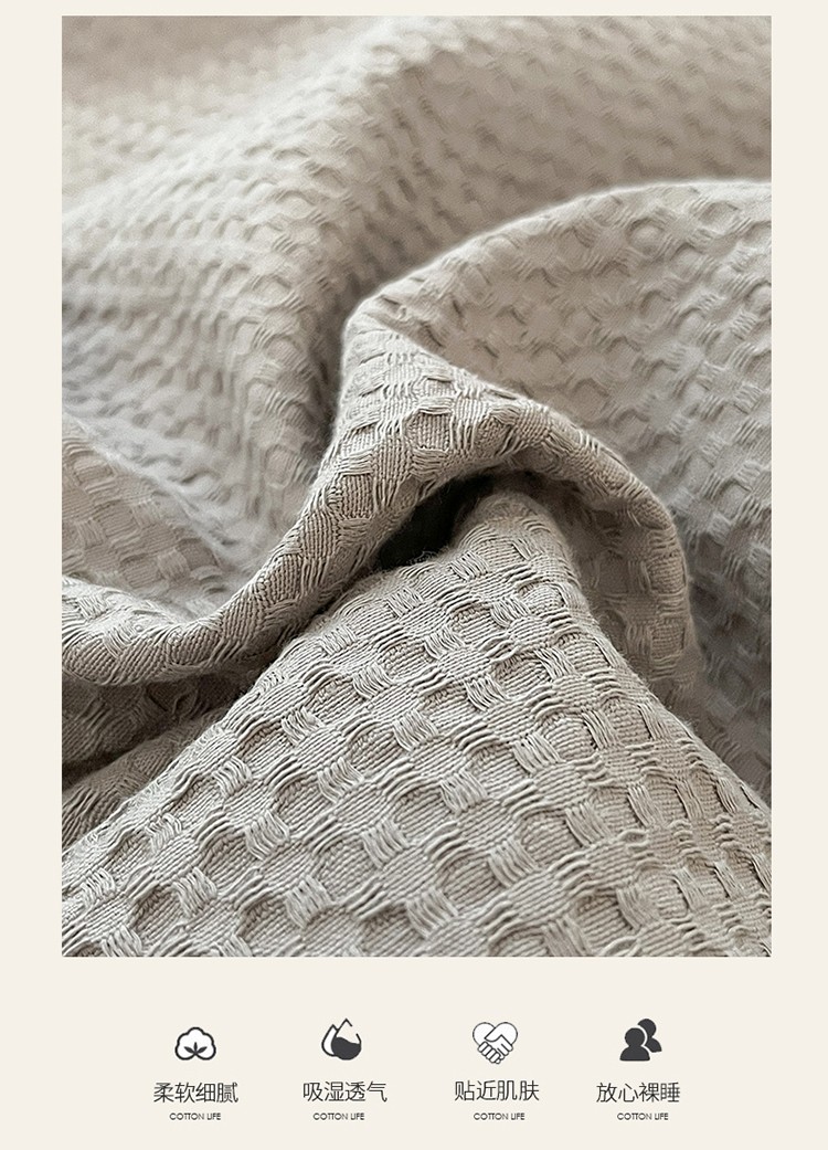 商品名称:雅居纺 2023新款全棉华夫格四件套 华夫格月灰