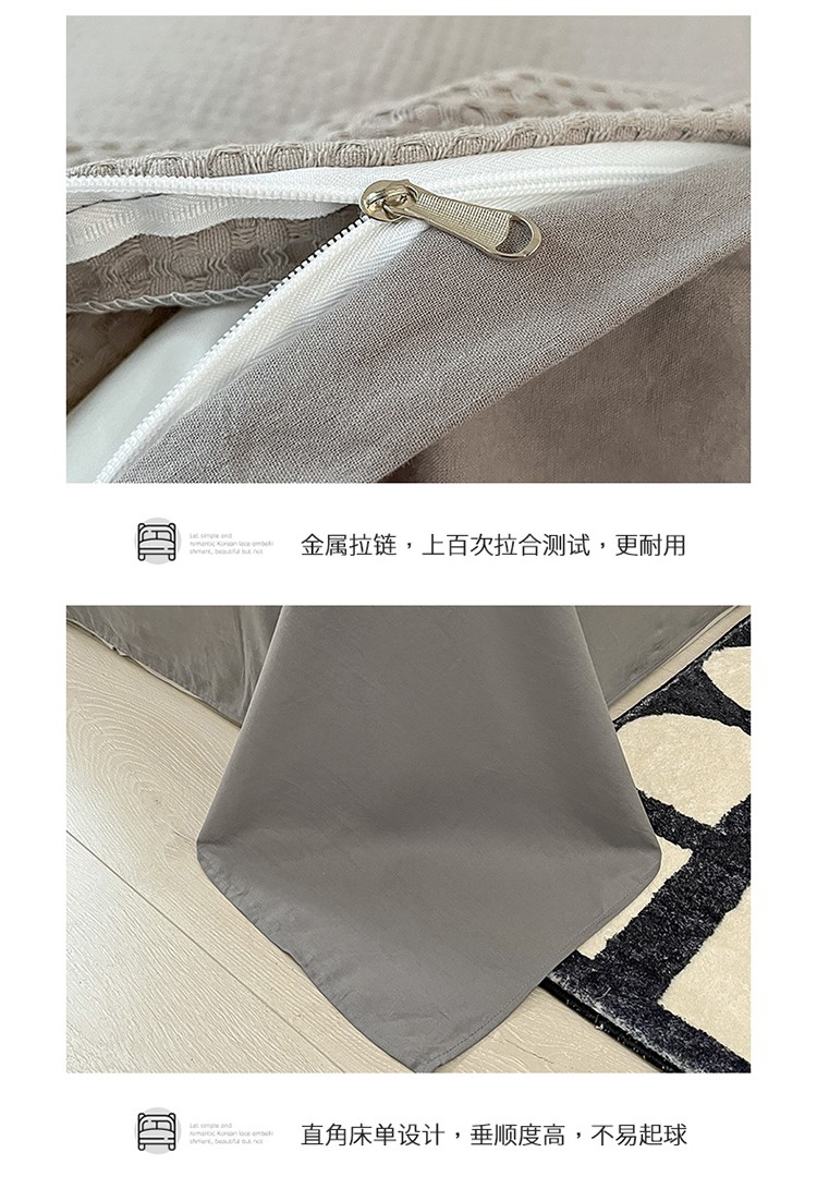 (总)雅居纺家纺 2022新款华夫格花边款四件套,梦幻蓝,橙色,纯白,米咖,浅粉,浅灰,优雅灰
