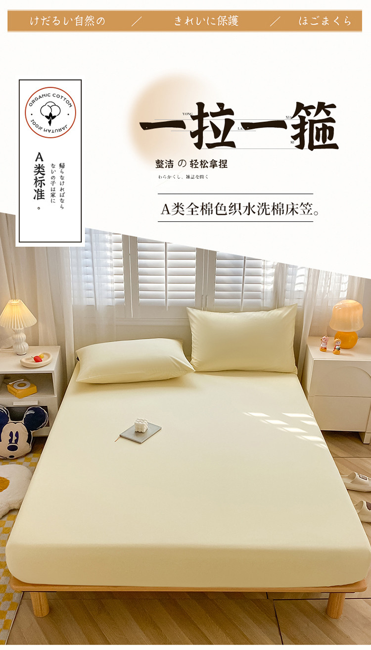商品名称:蓝米卡夫 2024新全棉色织水洗棉A类单品床笠 奶油黄