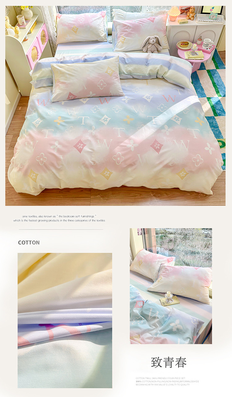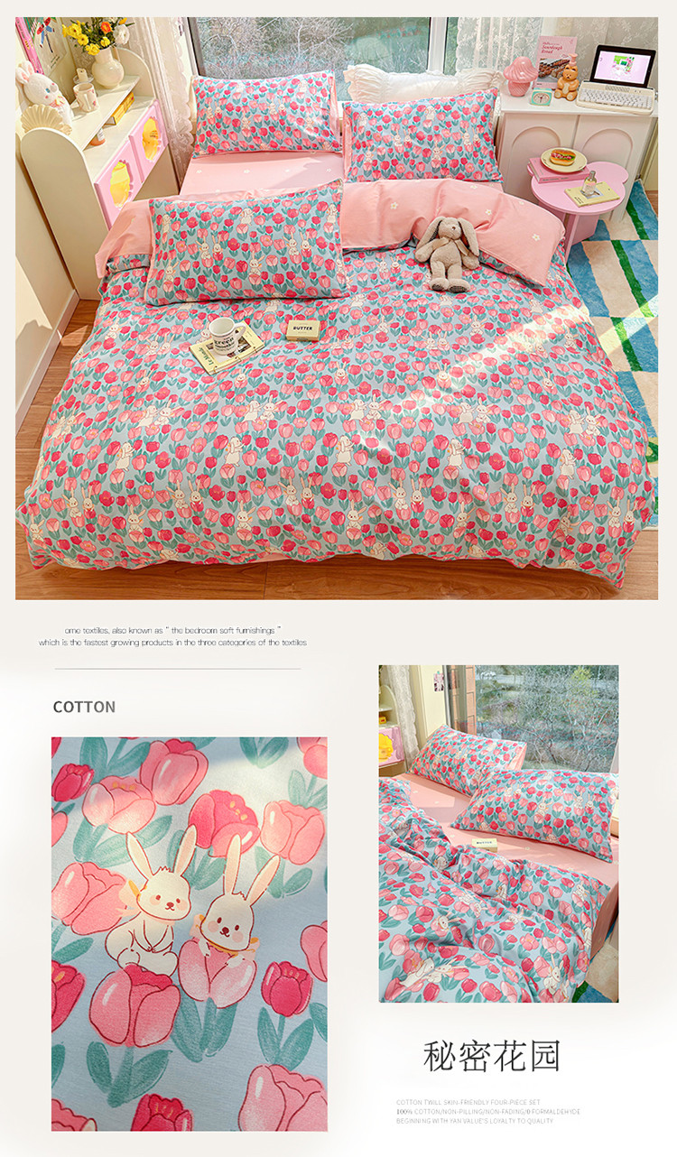 (总)名兮 2023新款全棉印花小清新四件套