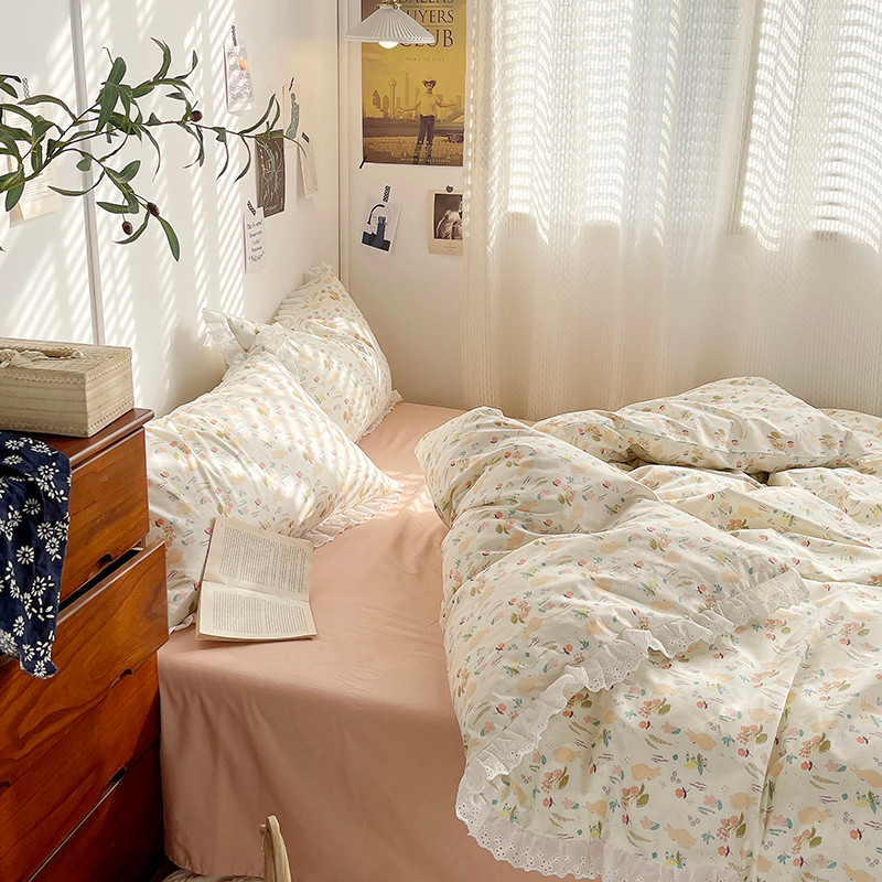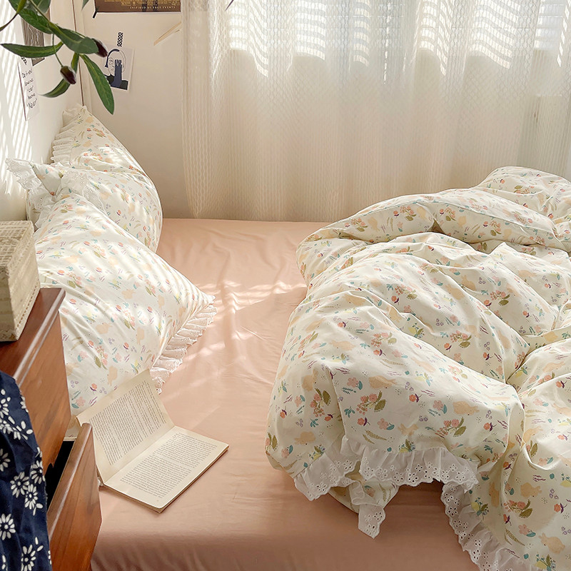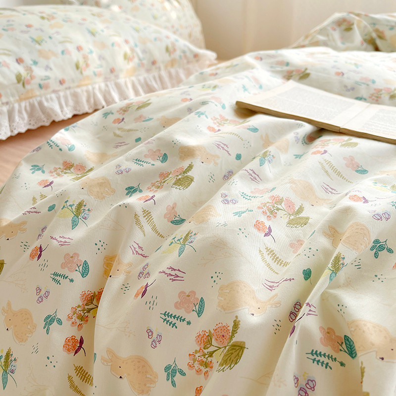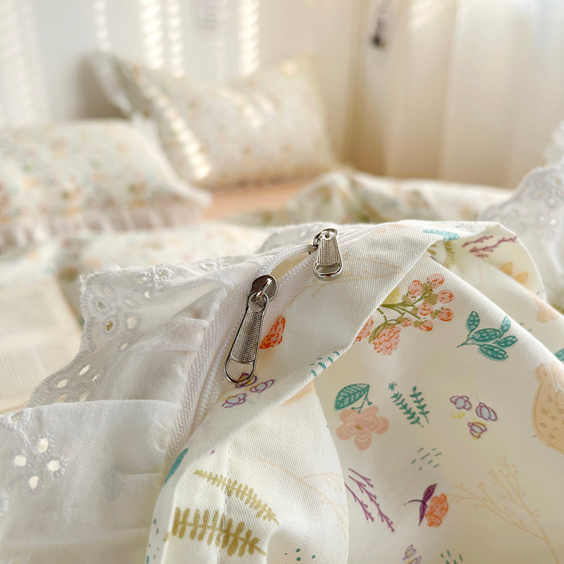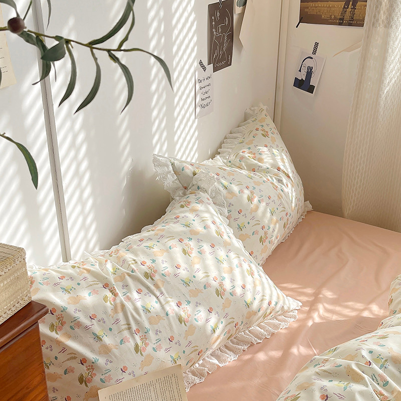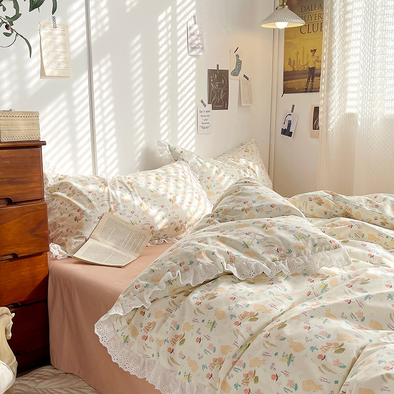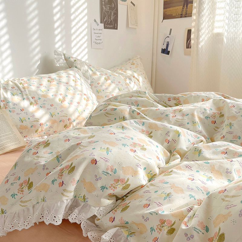 千朵 2023新款蕾丝花边四件套 花间小兔