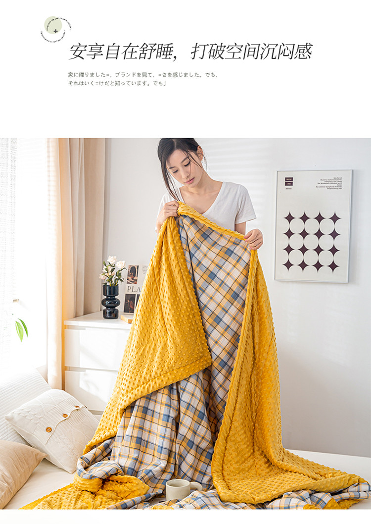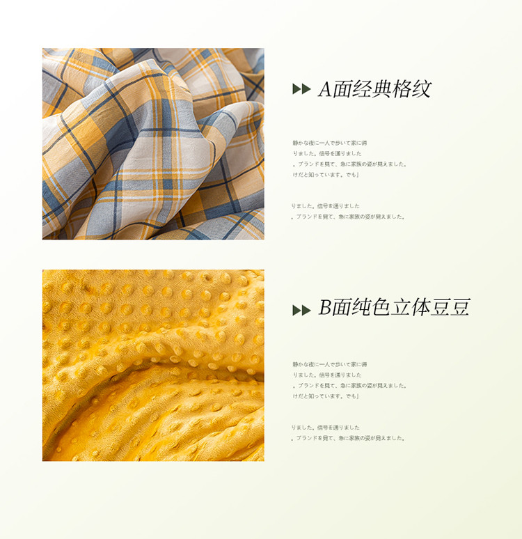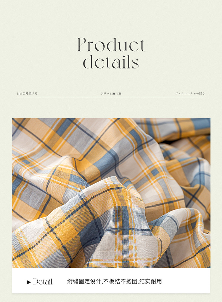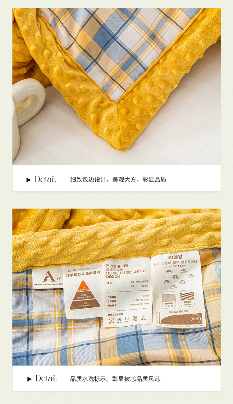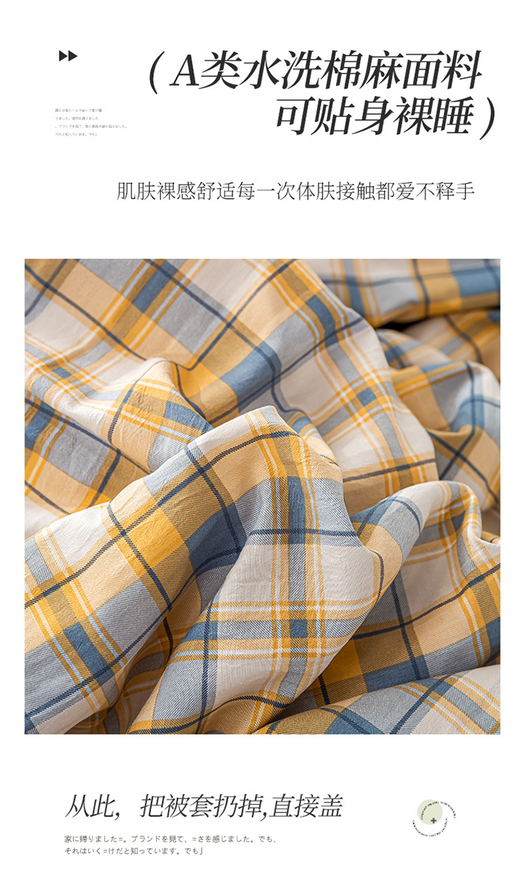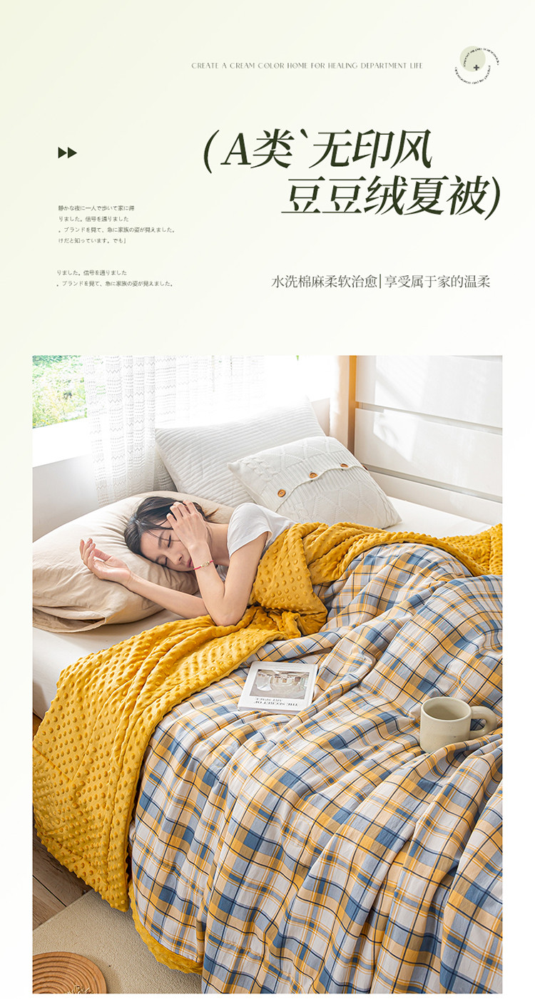 商品名称:欢乐季 2025新款A类水洗棉麻无印风格子款豆豆被-夏被 夏被-黄小格