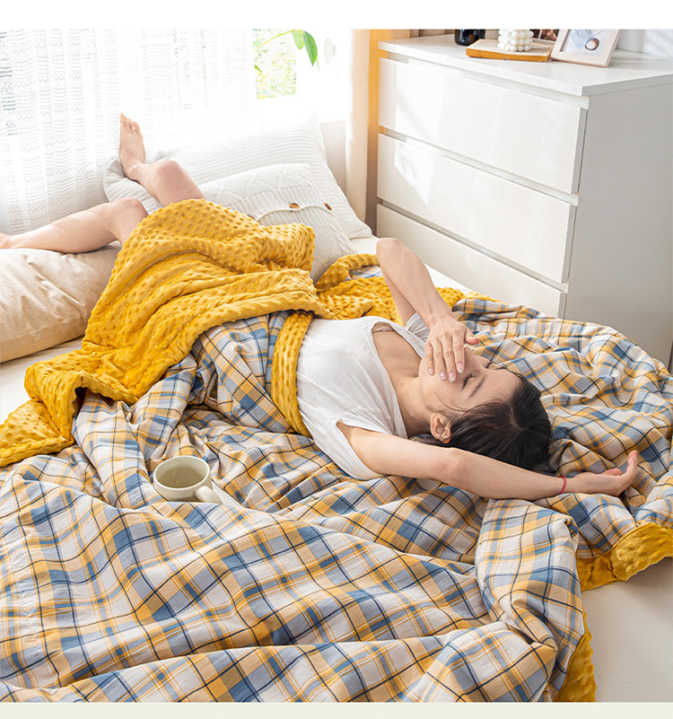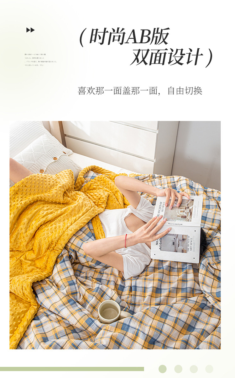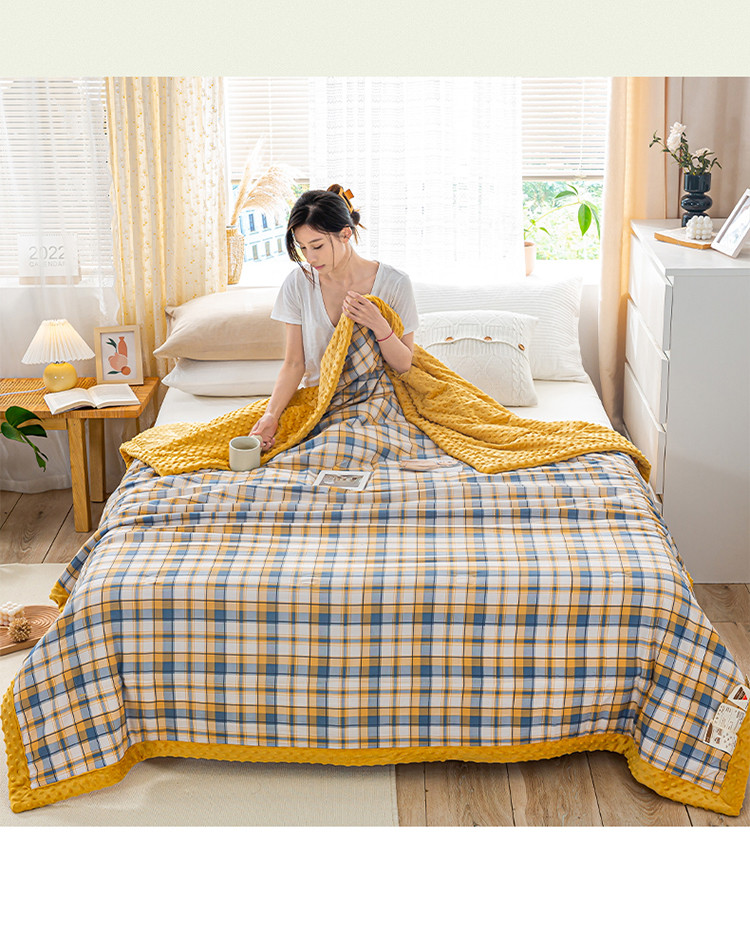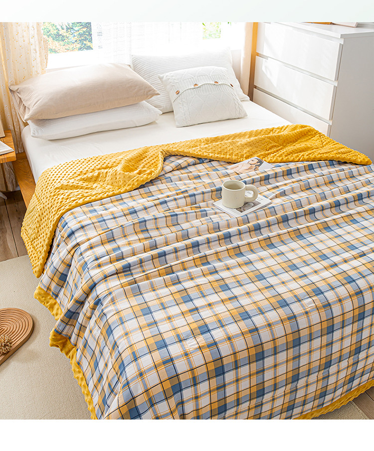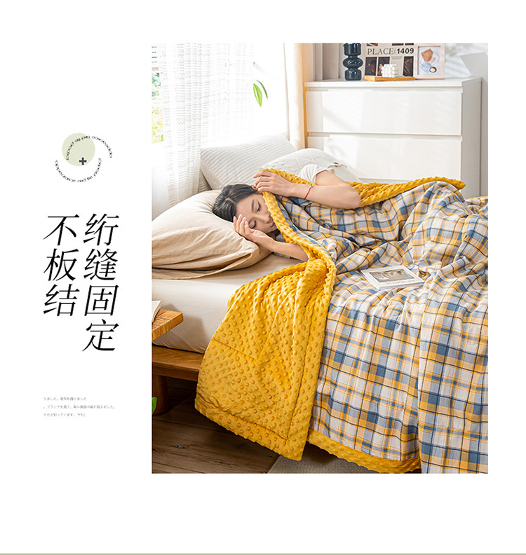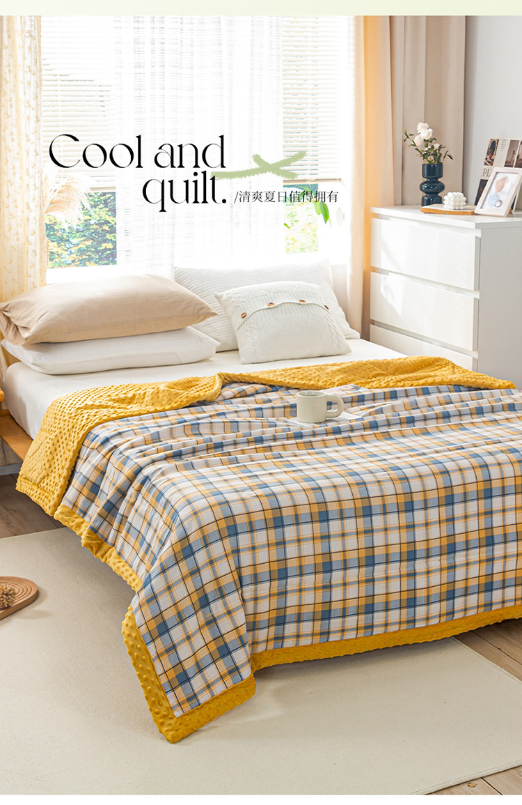欢乐季 2025新款A类水洗棉麻无印风格子款豆豆被-夏被 夏被-黄小格