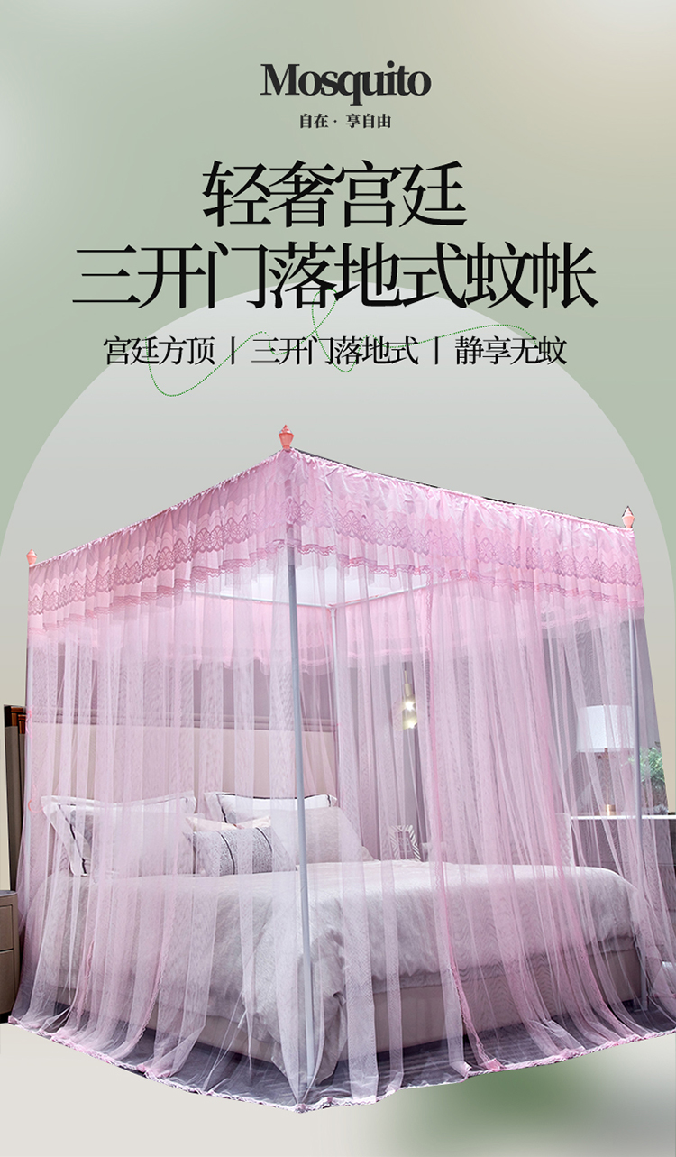 商品名称:夏彩 2023新款88556轻奢宫廷三开门落地式蚊帐 88556-虾粉