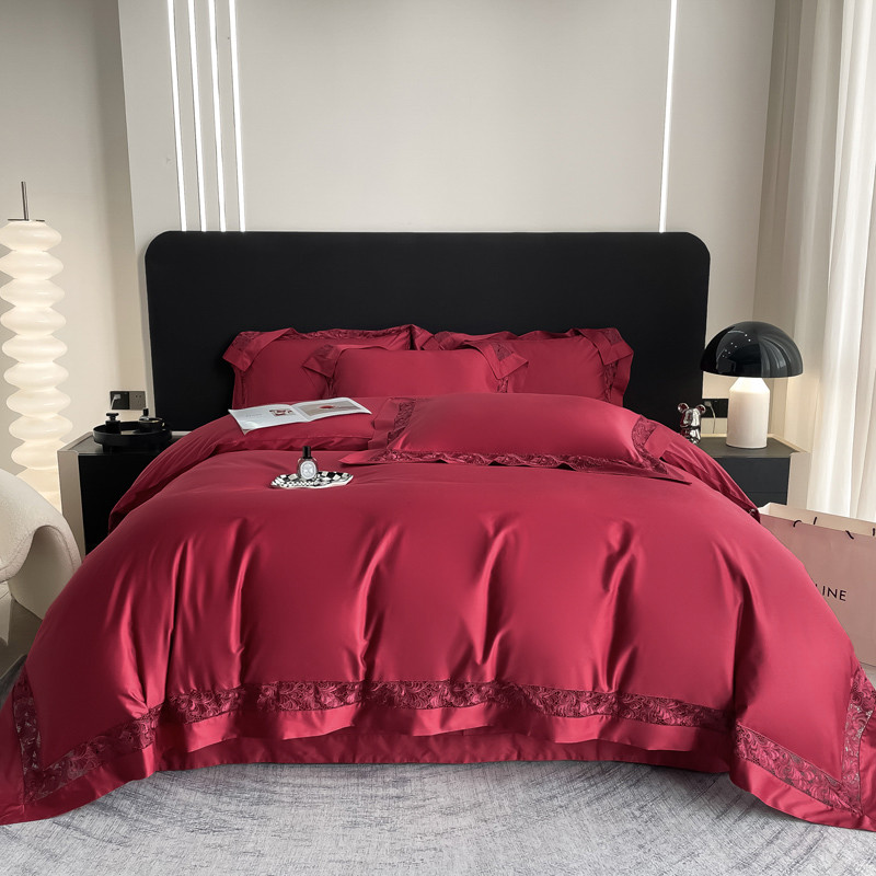 (总)若未家居 2023 新款高支高密长绒棉进口镂空款四件套 -爱法,橄榄绿,贵族红,皓月白,湖水蓝,羊脂玉