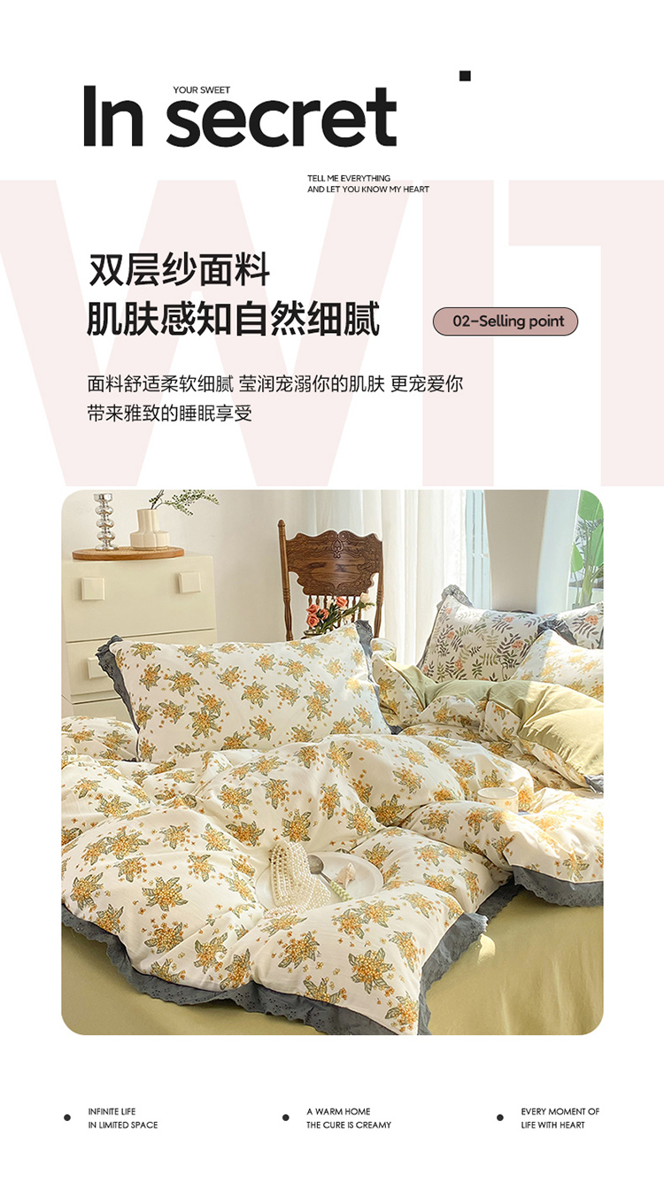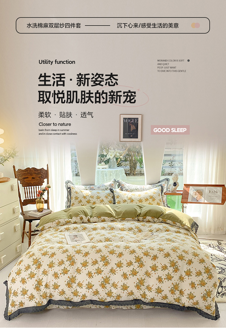 商品名称:艾米 2023新款水洗棉麻双层纱系列四件套 沉香