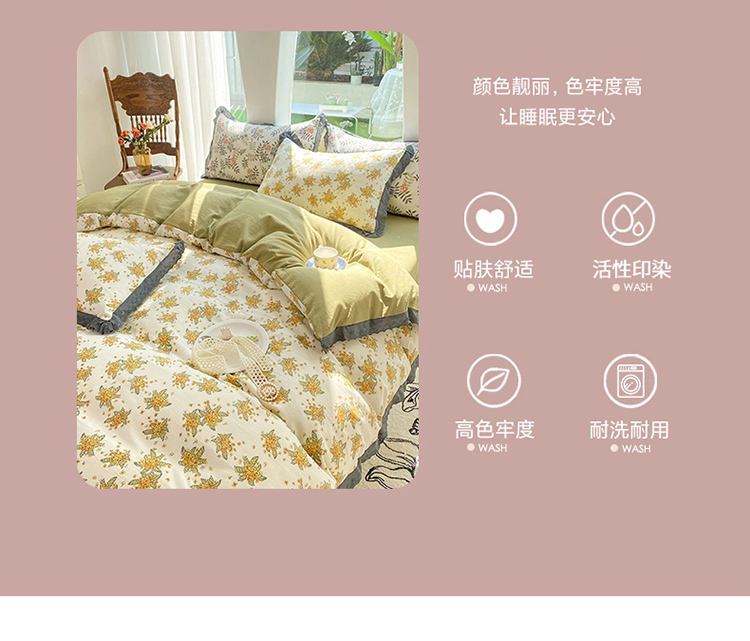 (总)艾米家居 2025新款水洗真丝贝壳边系列四件套,白,白+粉,豆沙,豆沙+蓝,黄,黄+橘色,灰色,蓝+黄,浅粉,水绿,天蓝