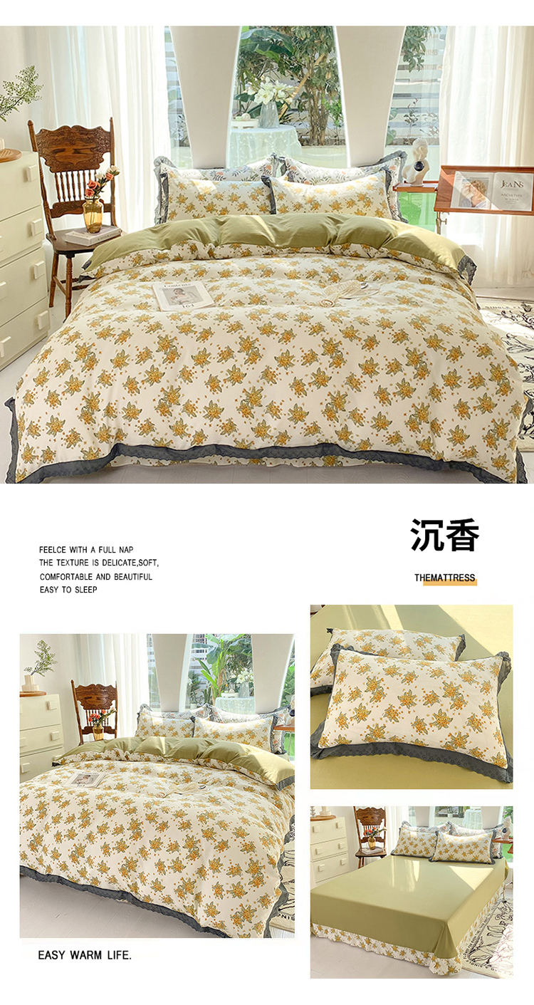 (总)艾米家居 2025秋冬新款牛奶绒泡泡印花花边四件套,豆沙条纹粉,蝴蝶花,太阳花