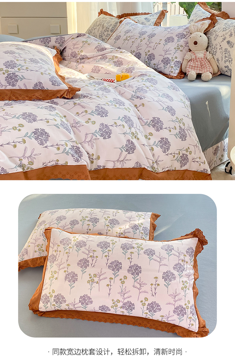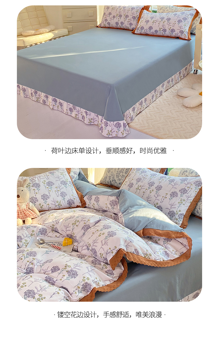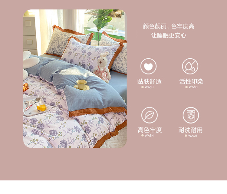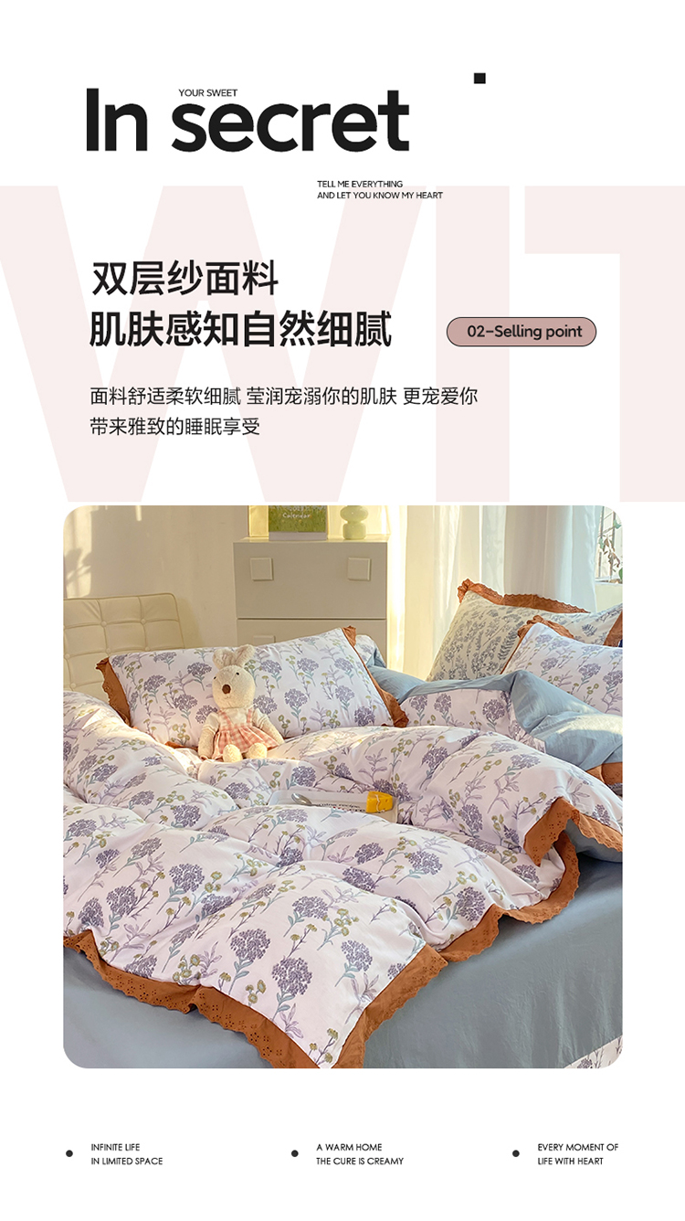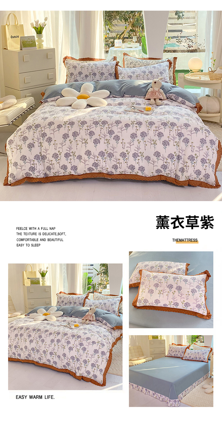商品名称:艾米 2023新款水洗棉麻双层纱系列四件套 薰衣草紫