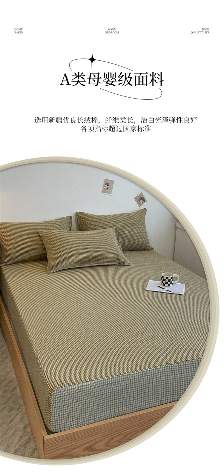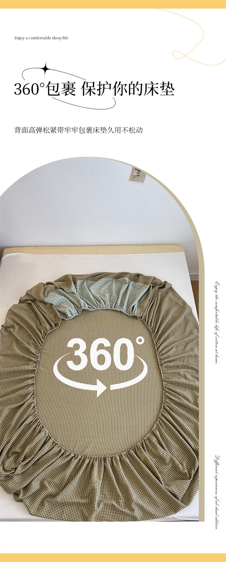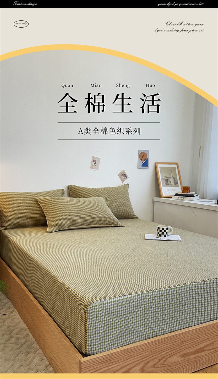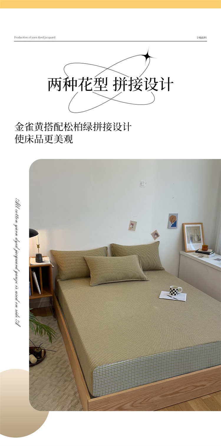 春皖家纺 2023新款A类全棉色织系列床笠 金雀黄+松柏绿