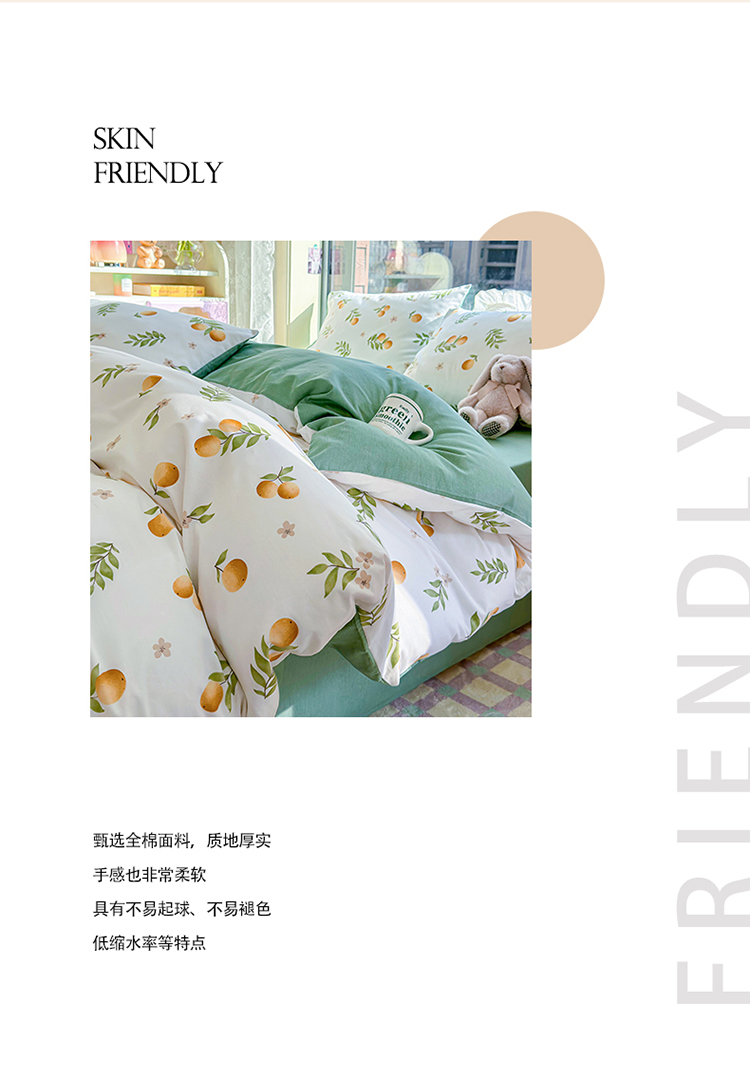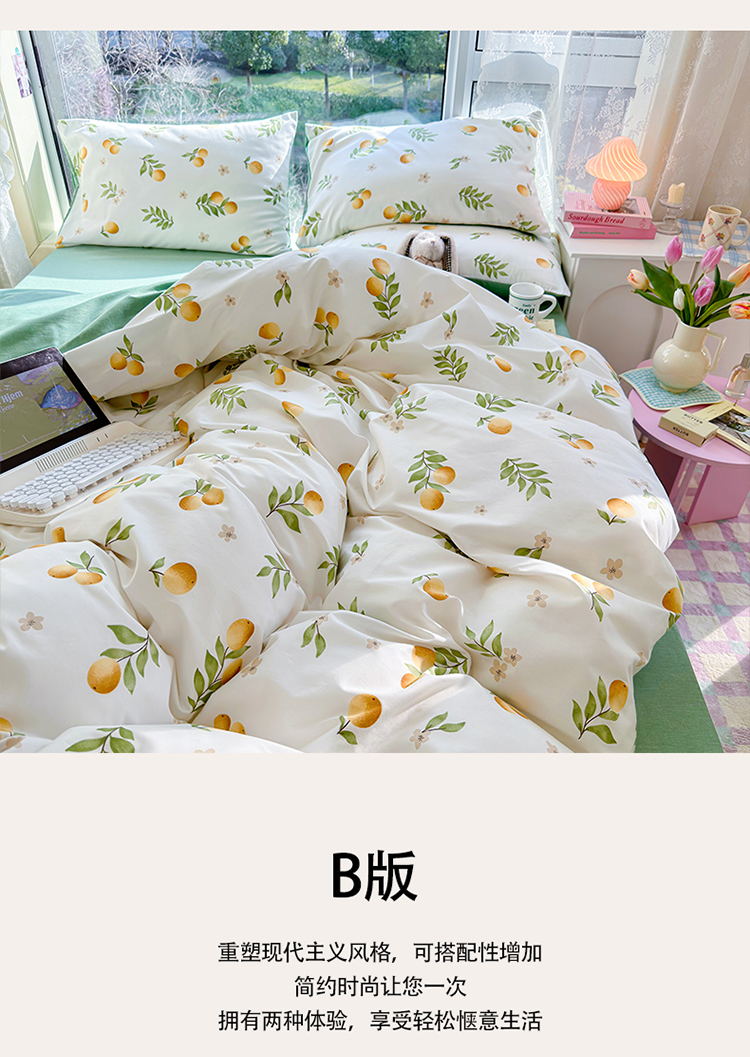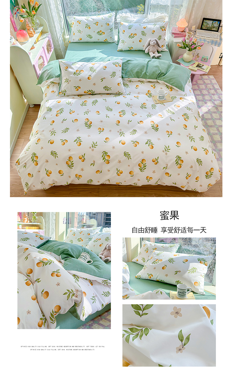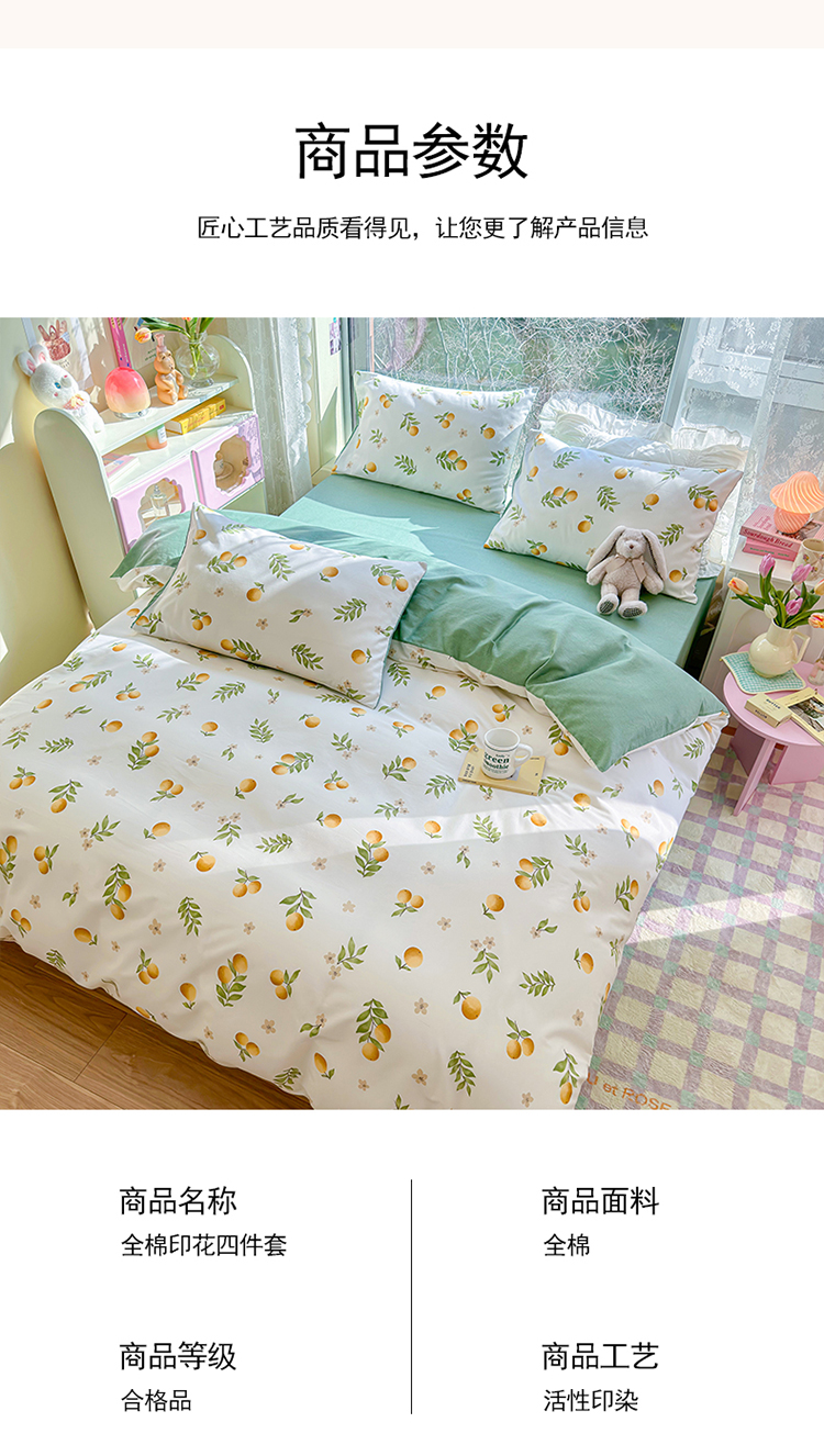 当前位置: 91家纺网 > 商品网购 > 床品套件 > 四件套 > 全棉普通四件套 > 琪格格2023新款全棉40支13372小清新四件套系列 蜜果