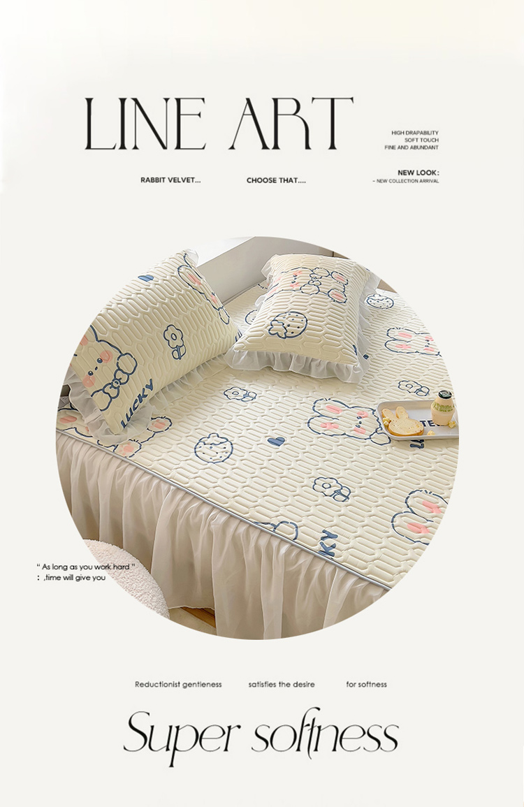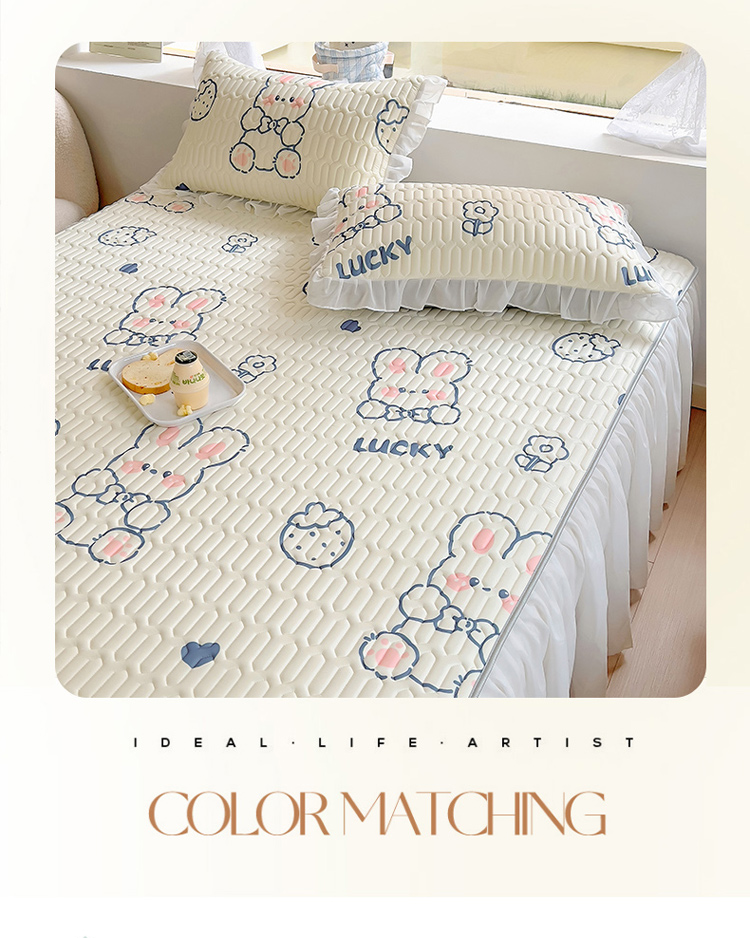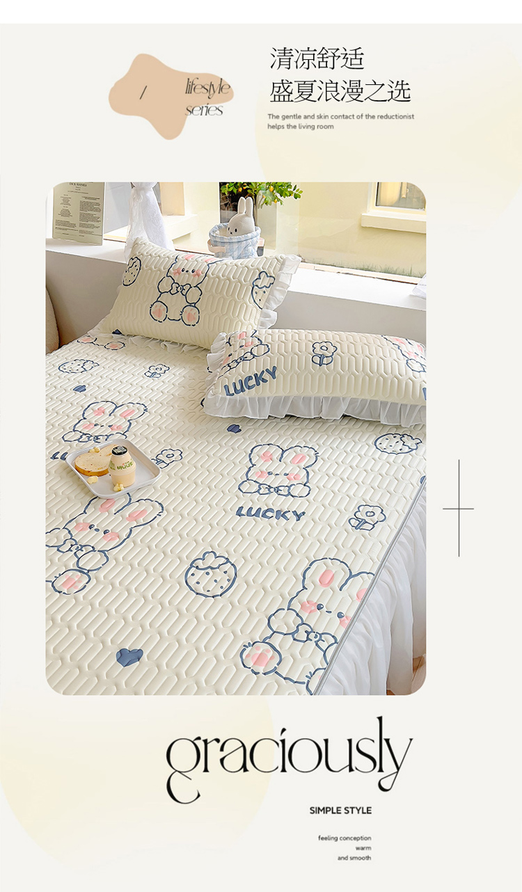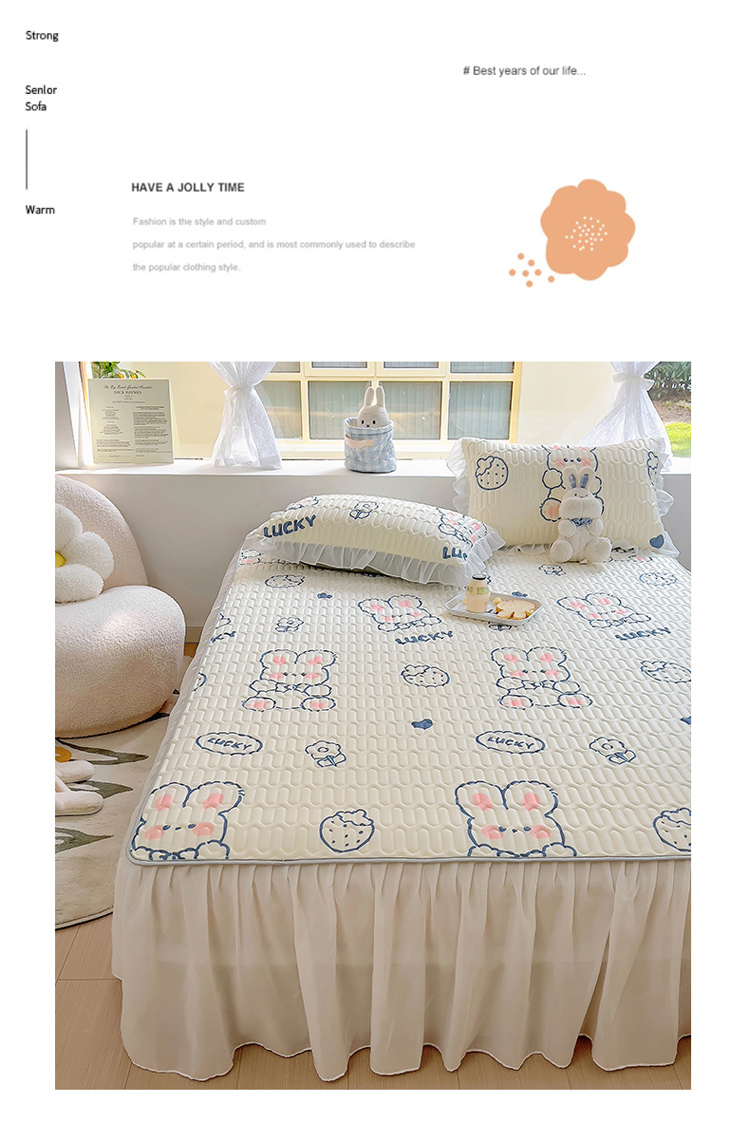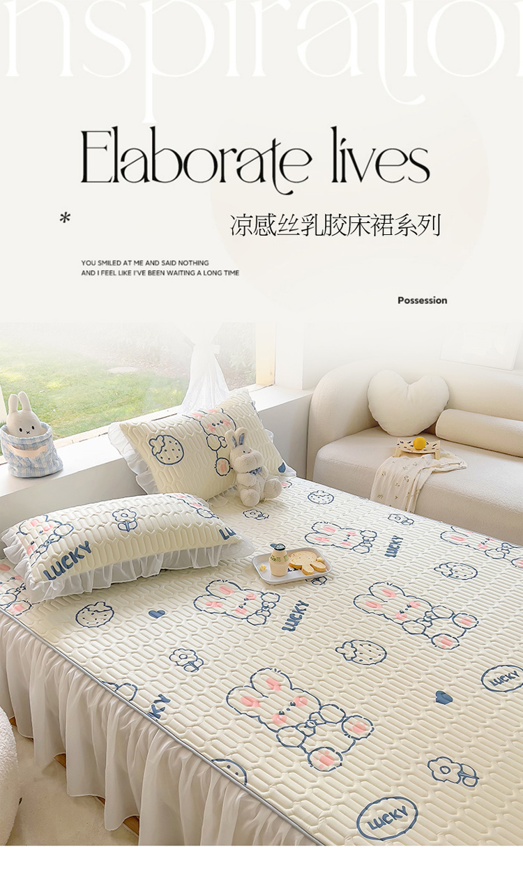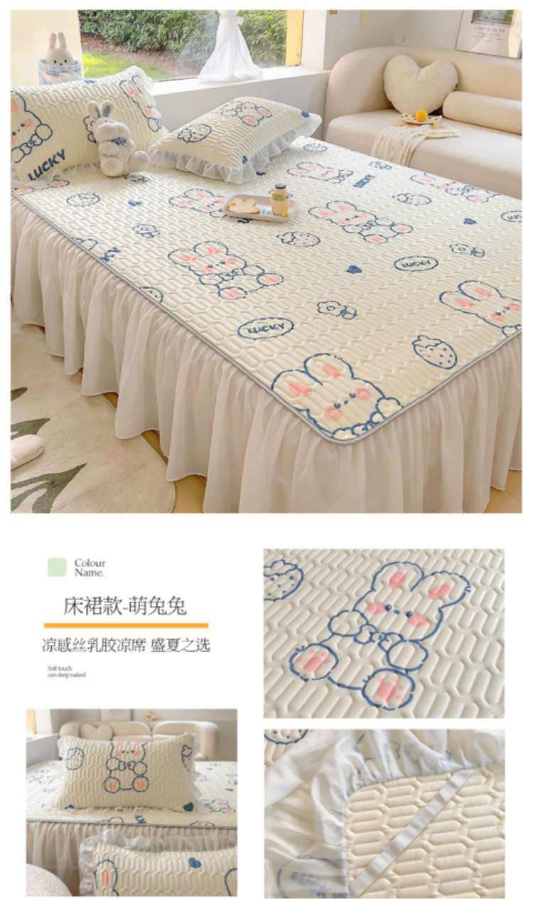 柒月家居2023新款乳胶床裙款凉席和夏被 床裙款-萌兔兔