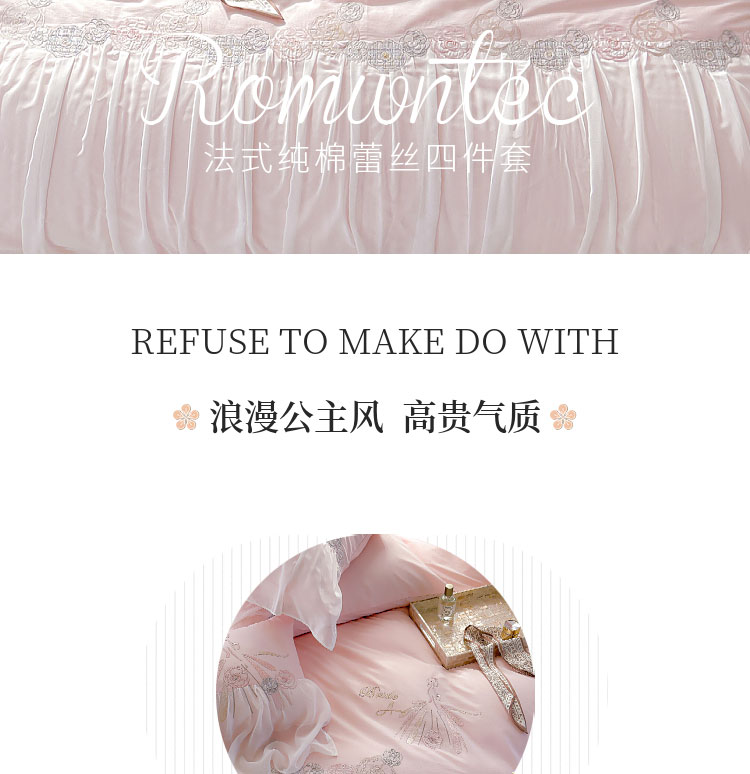 当前位置: 91家纺网 > 商品网购 > 床品套件 > 四件套 > 全棉普通四件套 > 亲亲公主 2025新款全棉蕾丝公主风四件套-芊芊公主 粉色