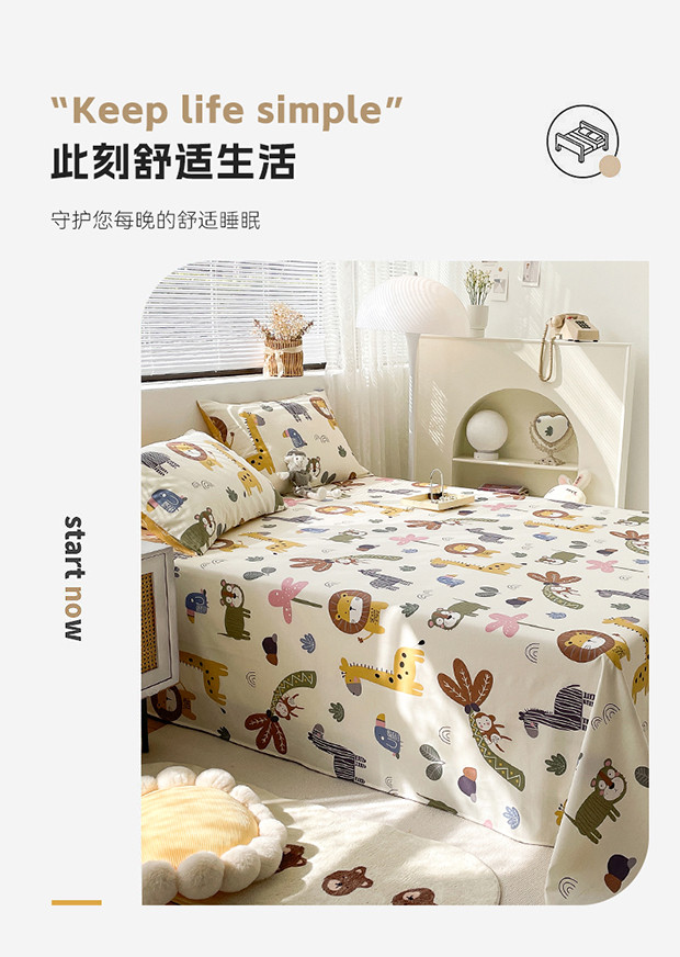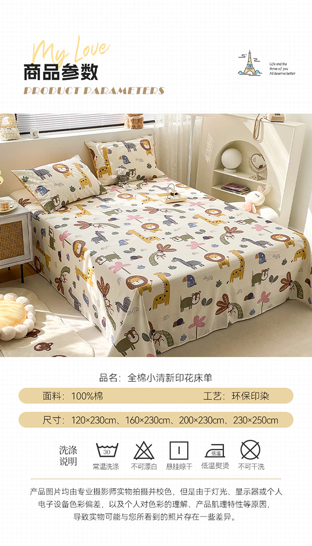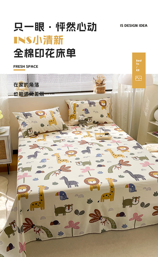 商品名称:绵庭 2023新款 全棉印花床单 野生动物园