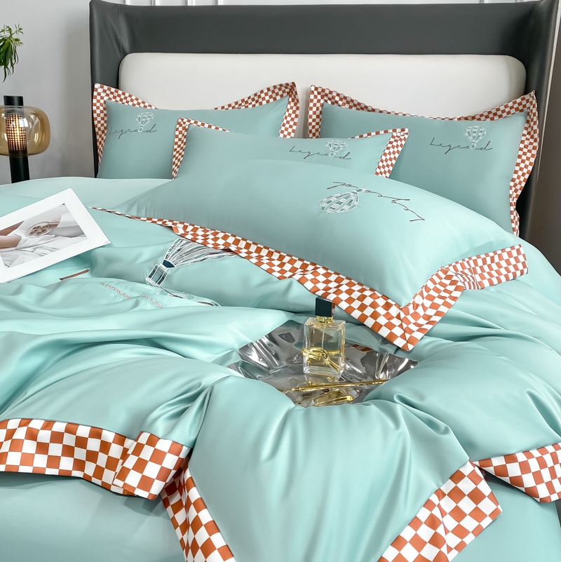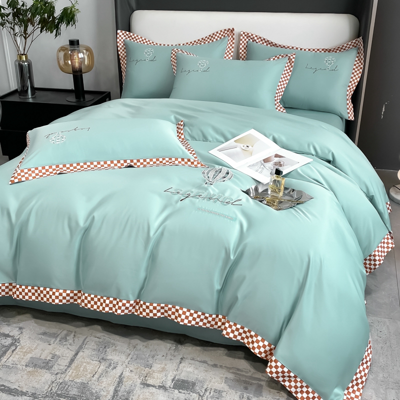 商品名称:伊人居 2023新款棋盘格四件套品尚系列 湖水蓝
