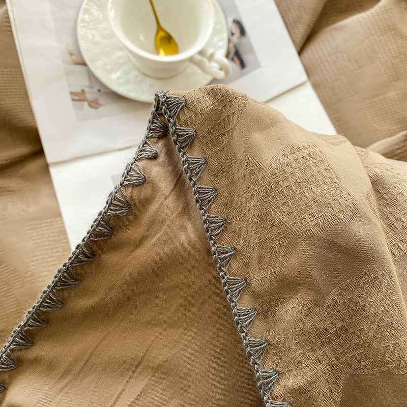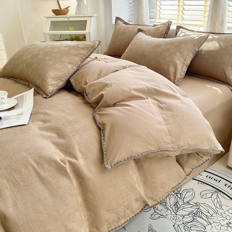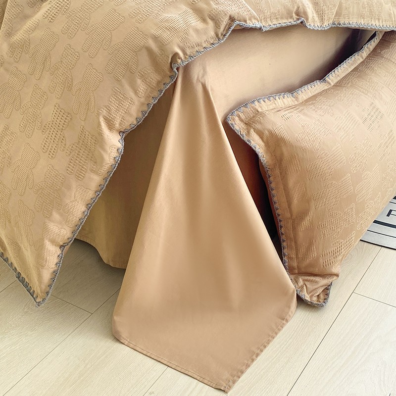 商品名称:韩秀2024款13372提花华夫格60s贝壳绣全棉四件套 罗曼-驼色