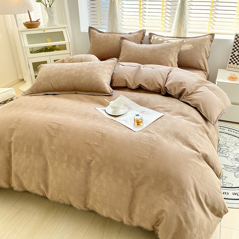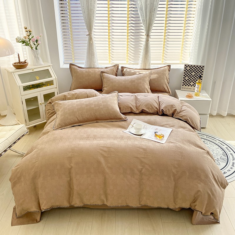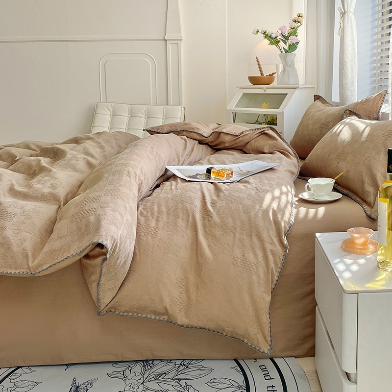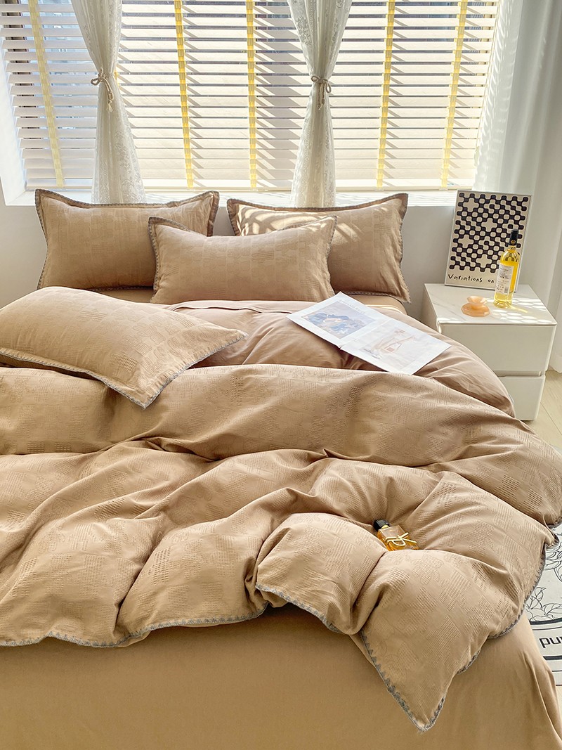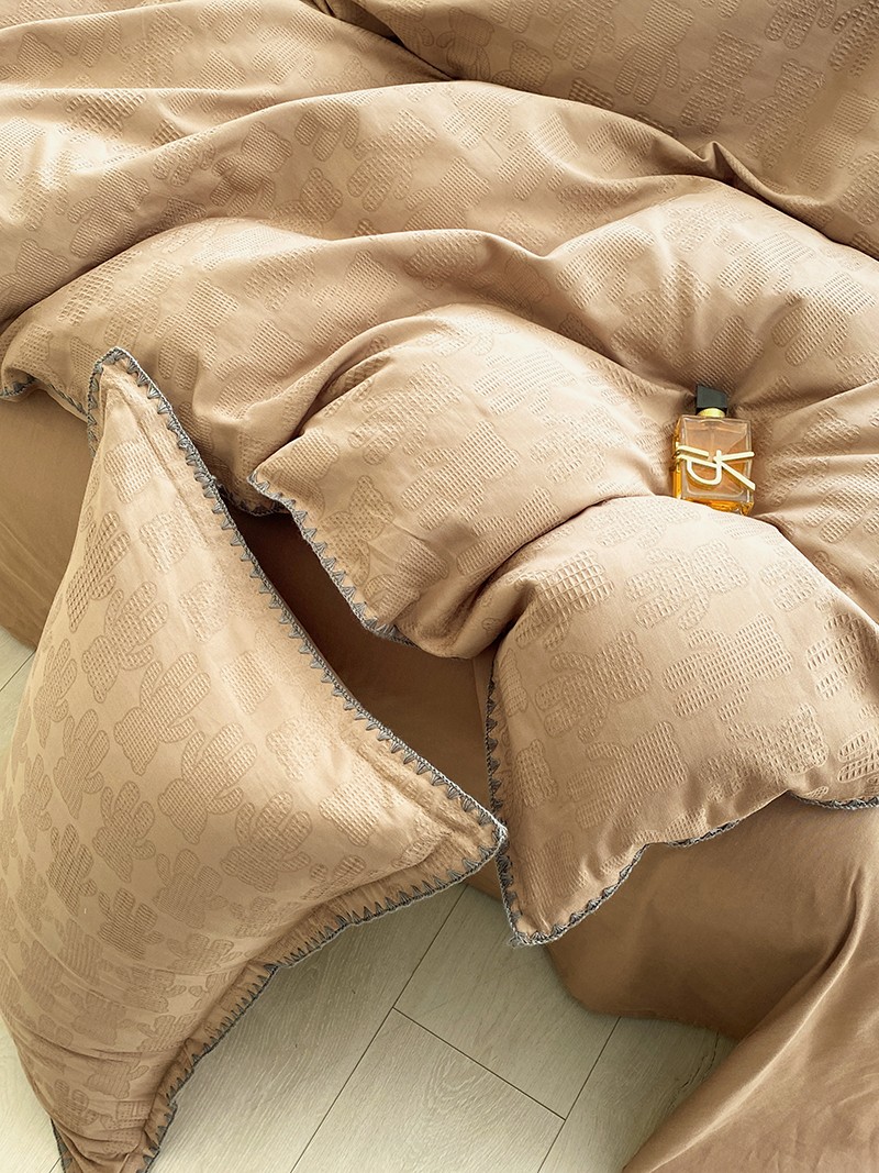 韩秀2024款13372提花华夫格60s贝壳绣全棉四件套 罗曼-驼色