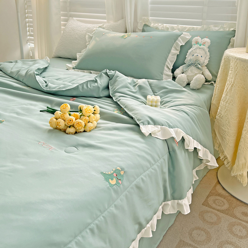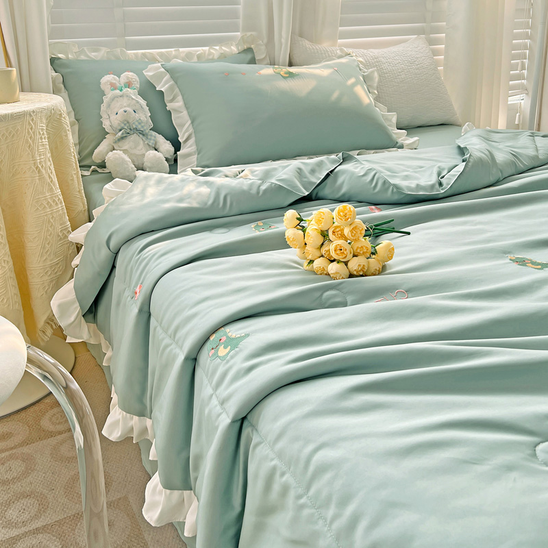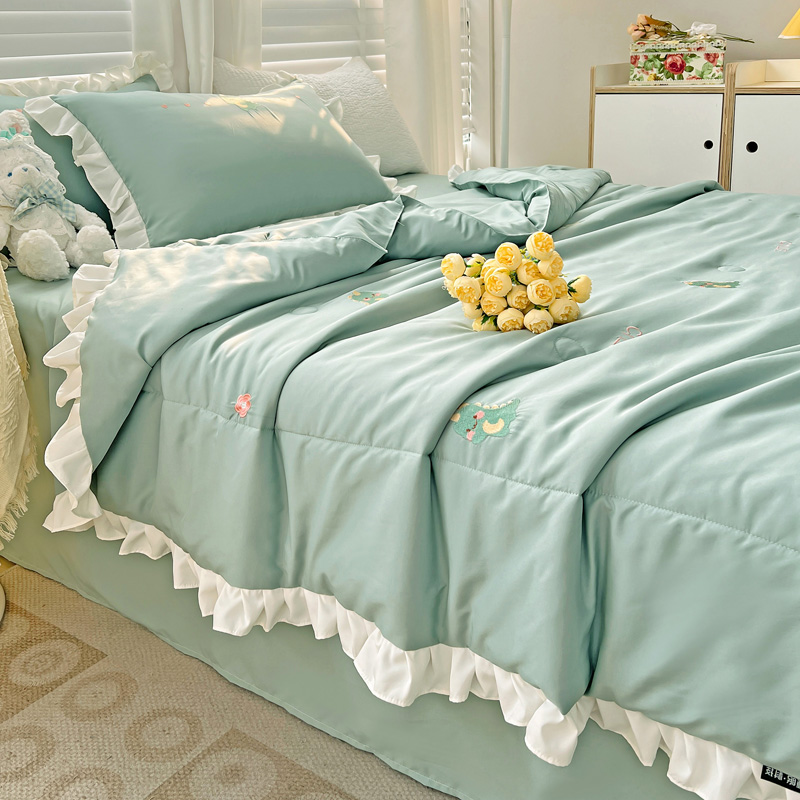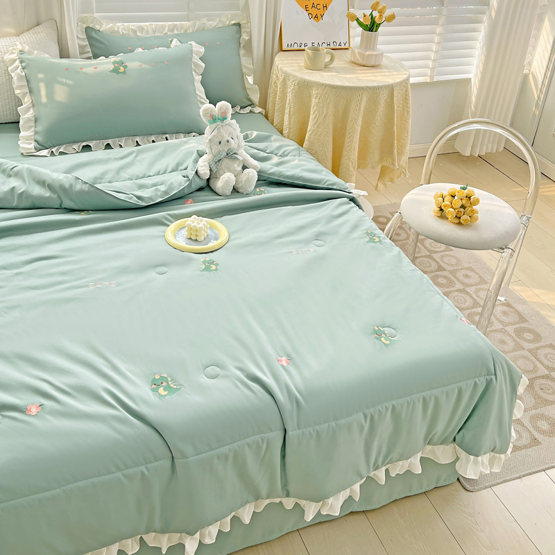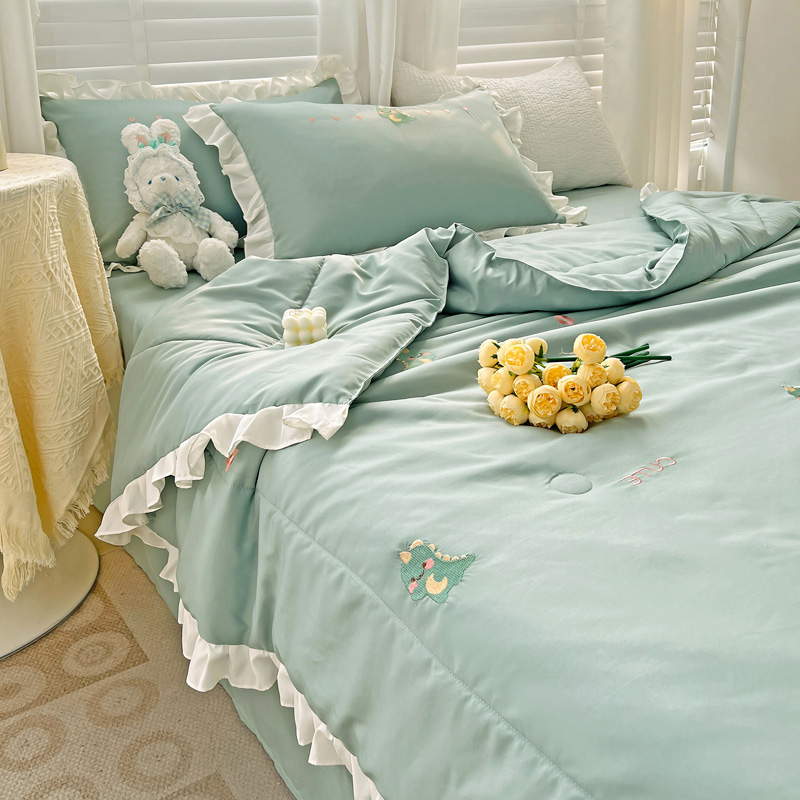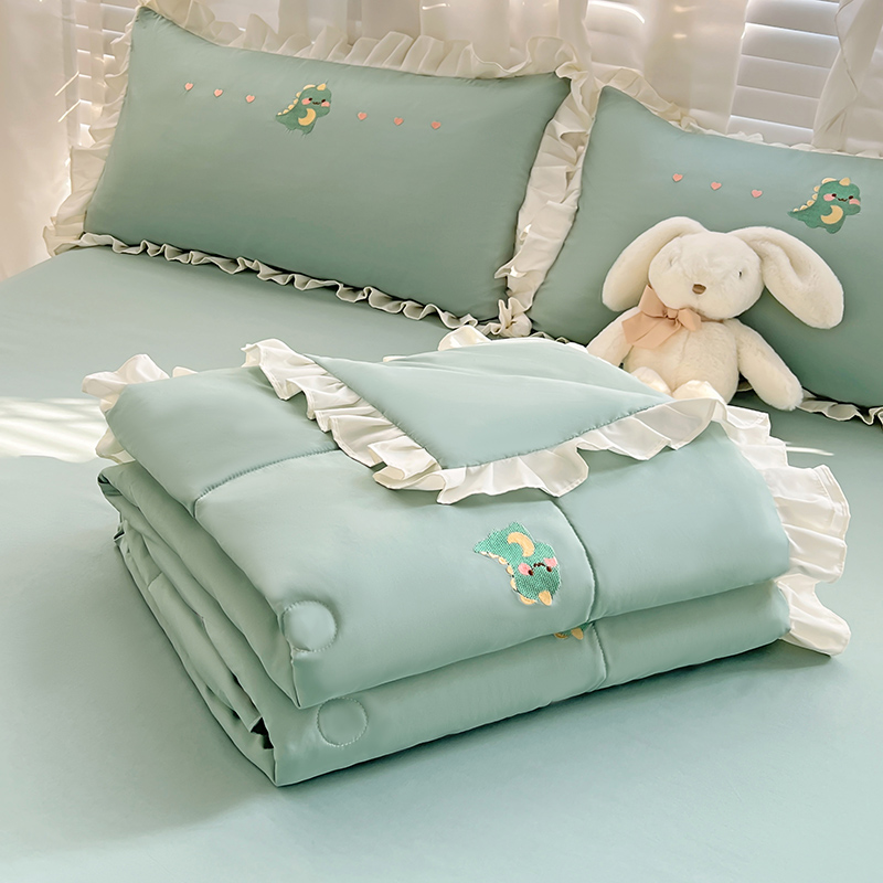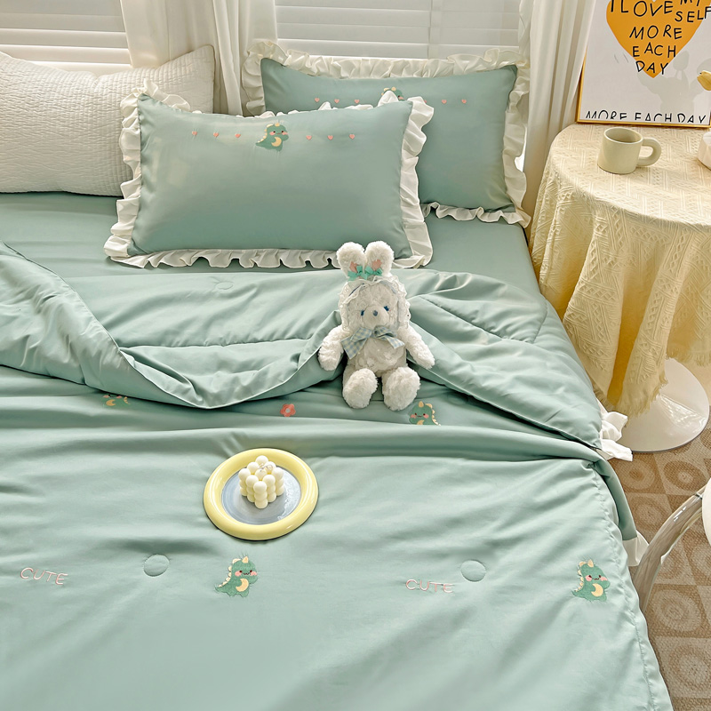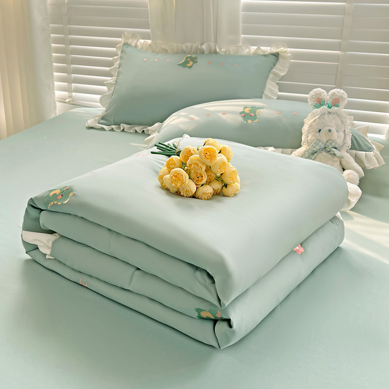 商品名称:寐居 2023水洗天丝棉刺绣夏被 幸运恐龙-松石绿