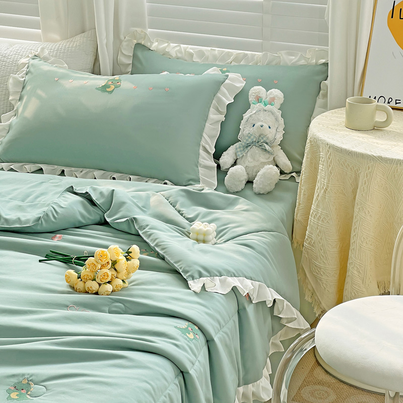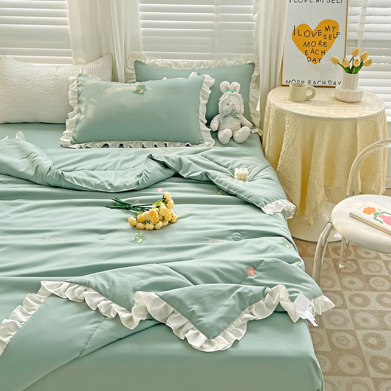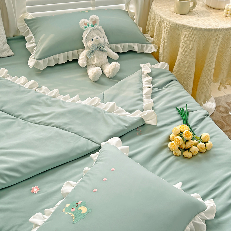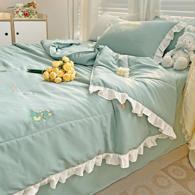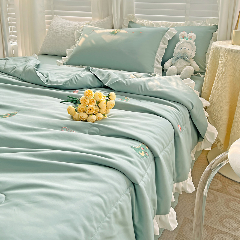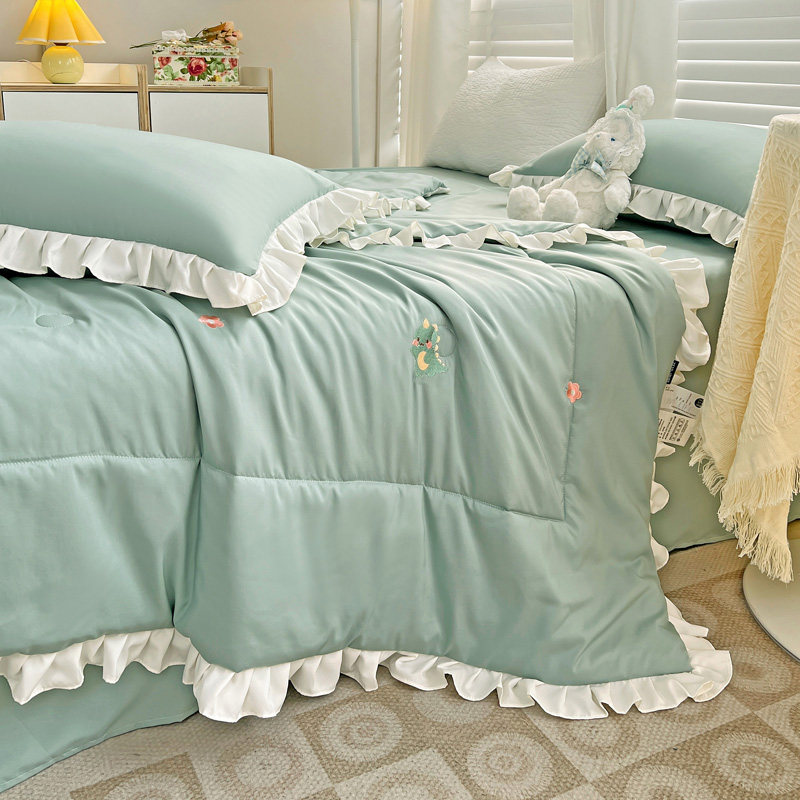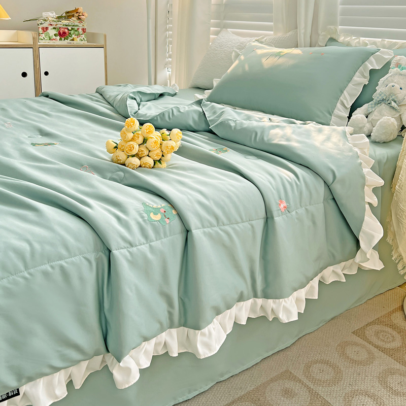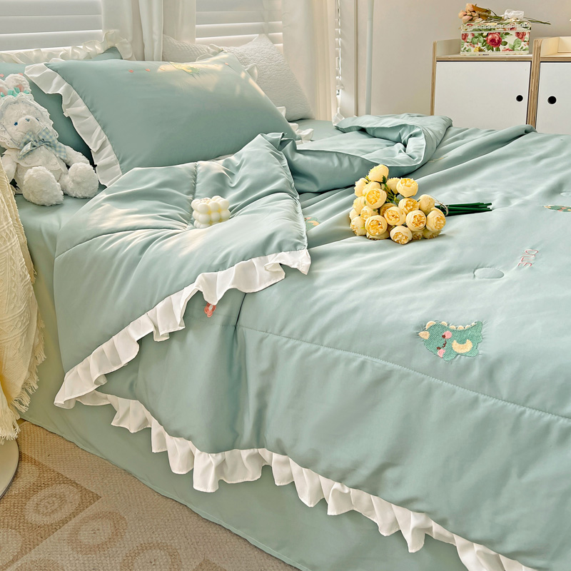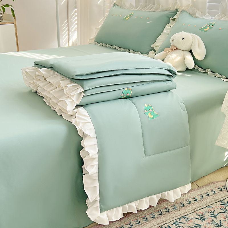 商品名称:寐居 2023水洗天丝棉刺绣夏被 幸运恐龙-松石绿