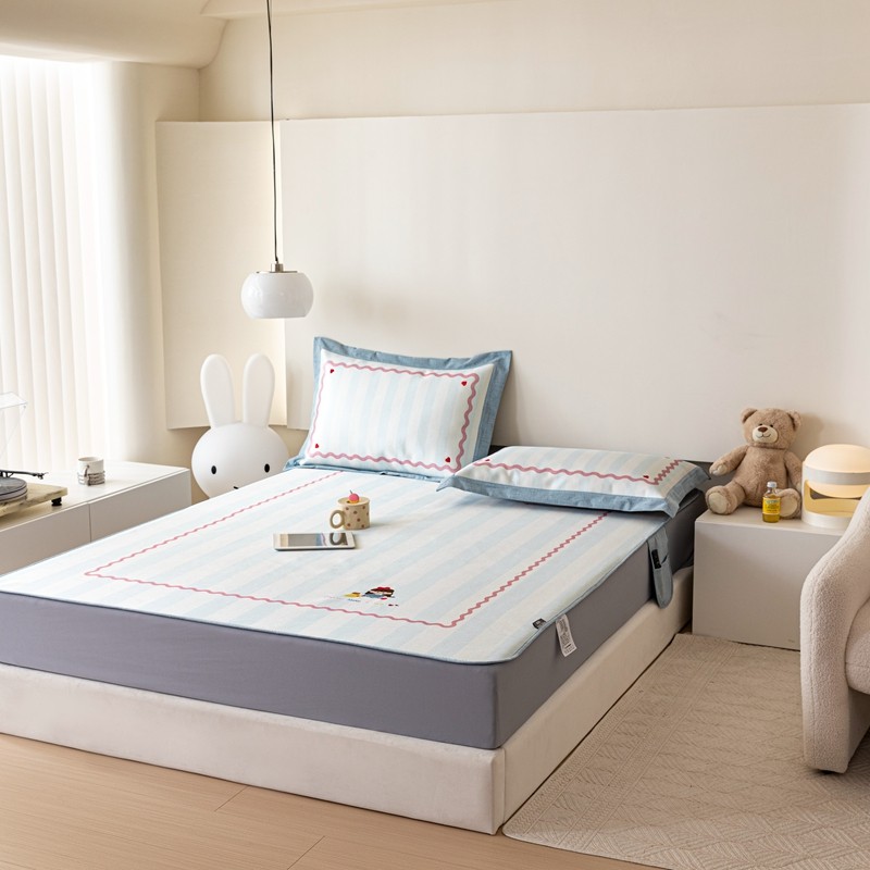 (总)本希家居 2024新款小清新刺绣系列高端可水洗冰丝席,蓝条小汽车床笠,蓝条小汽车平席,甜甜圈床笠,甜甜圈平席,小彩靴床笠,小彩靴平席,小丑皮皮床笠,小丑皮皮平席