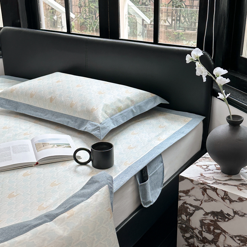 当前位置: 91家纺网 > 商品网购 > 床上用品 > 凉席 > 冰丝席 > 本希家居 2023新款时尚高端款冰丝席 鎏金千鸟格-蓝 平席