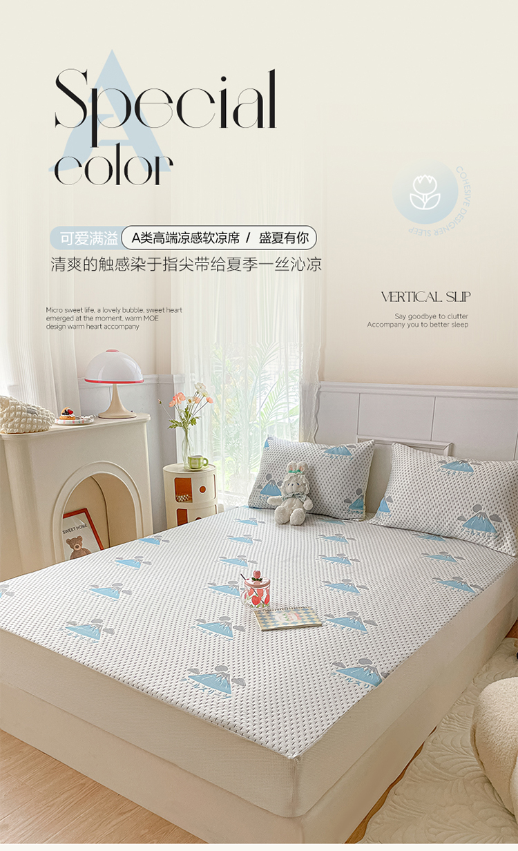雅居纺 2023新款A类高端提花凉感凉席 冰岛-蓝