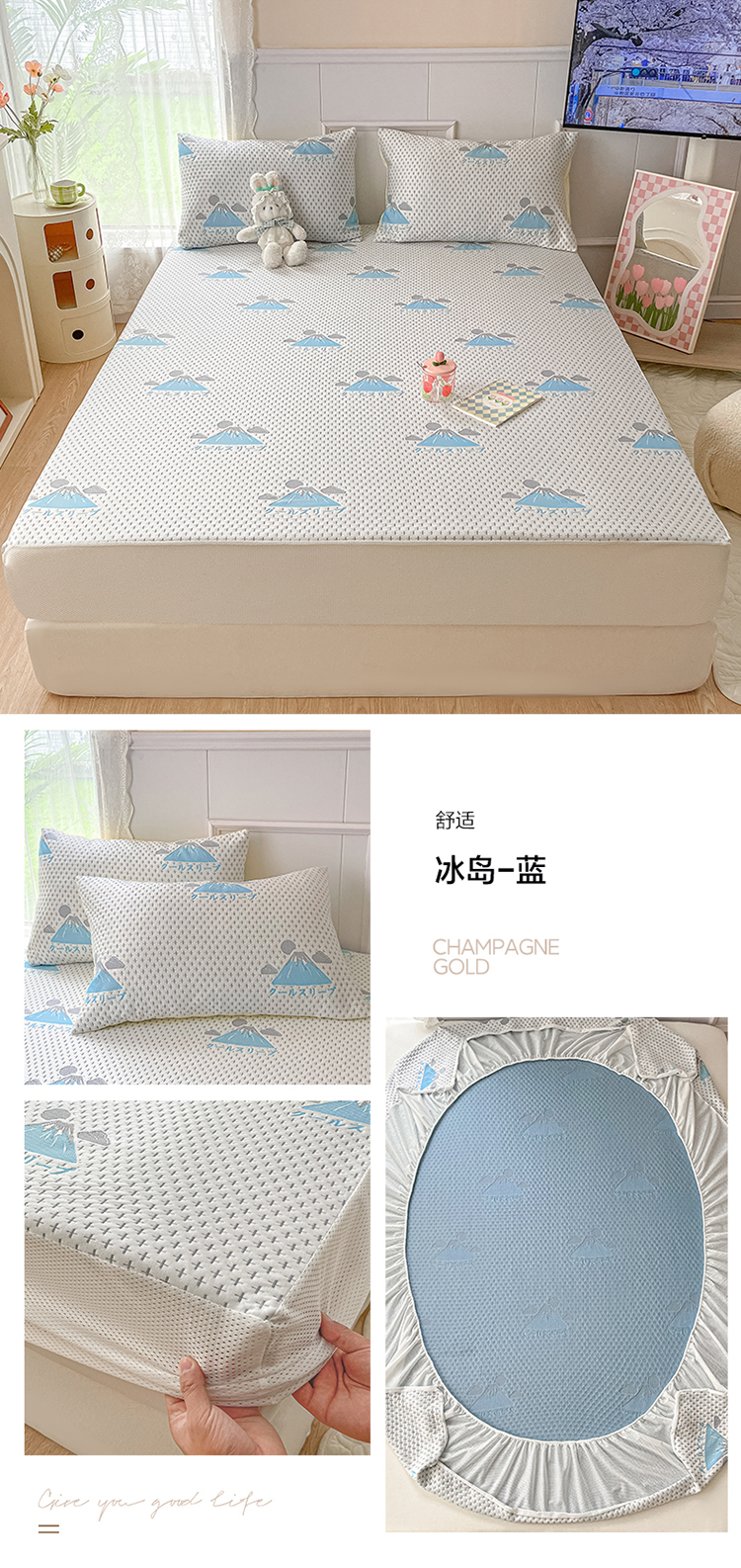 商品名称:雅居纺 2023新款A类高端提花凉感凉席 冰岛-蓝